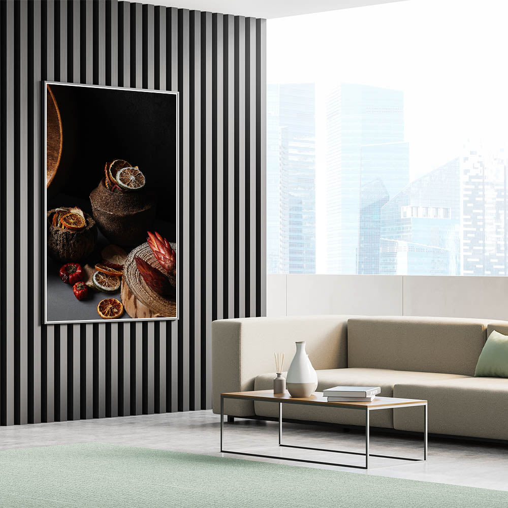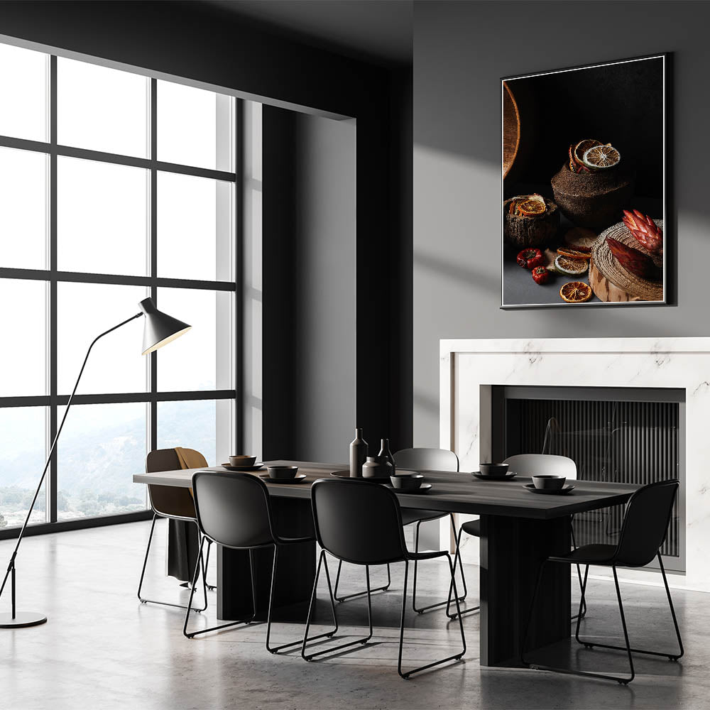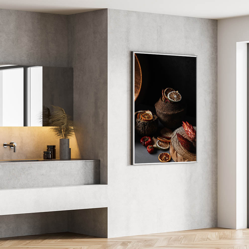 Enhance your rustic or farmhouse decor with this beautiful Rustic Wall Art, featuring a still life of dried citrus slices, wooden textures, and earthy tones. The intricate details of the citrus and natural materials evoke a cozy, warm atmosphere, perfect for adding a rustic charm to any kitchen, dining room, or living space. This piece is ideal for anyone looking to incorporate vintage-inspired wall art or rustic home decor ideas into their home.