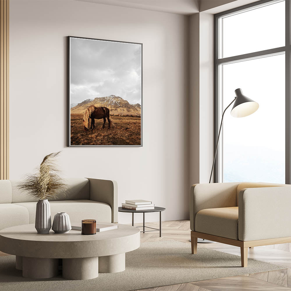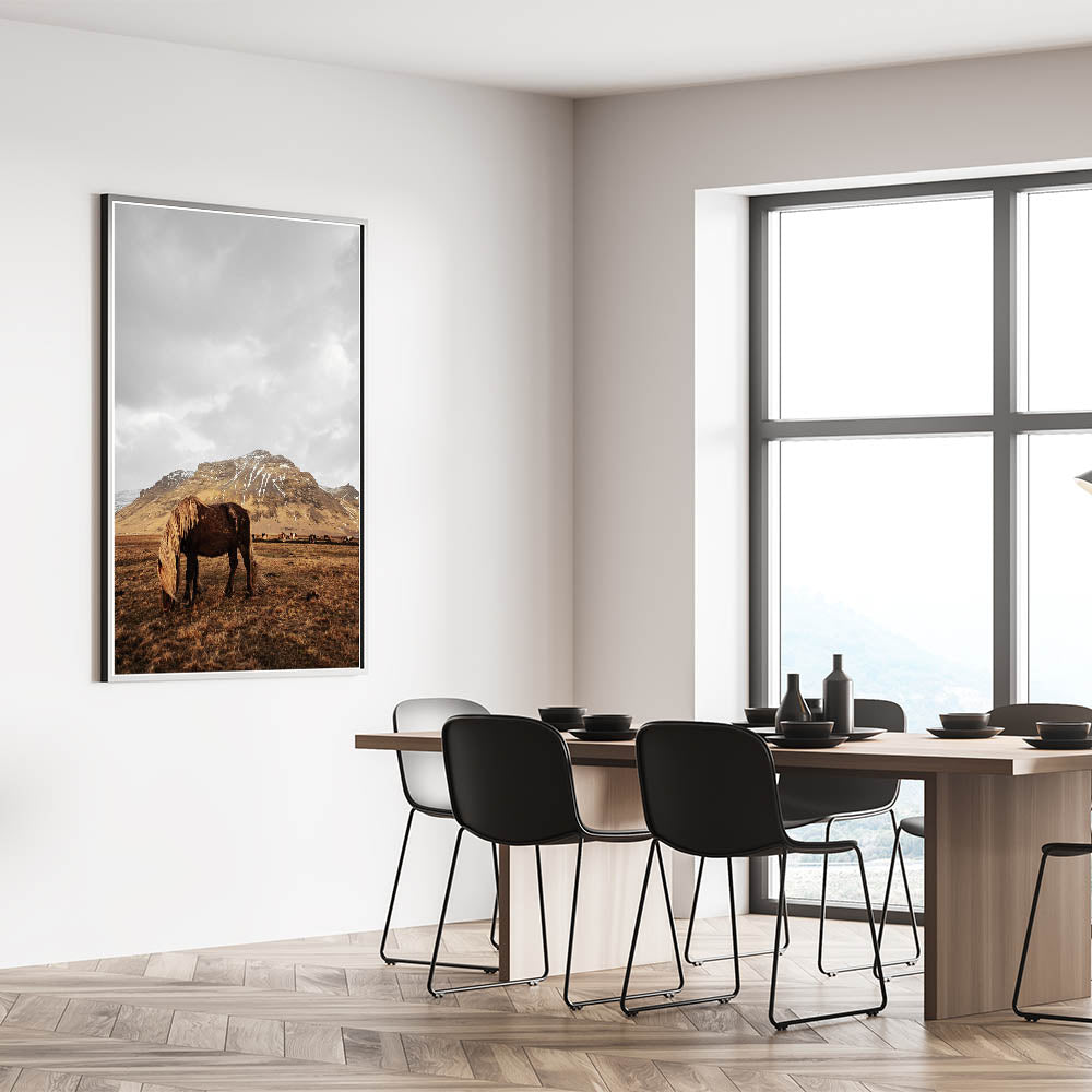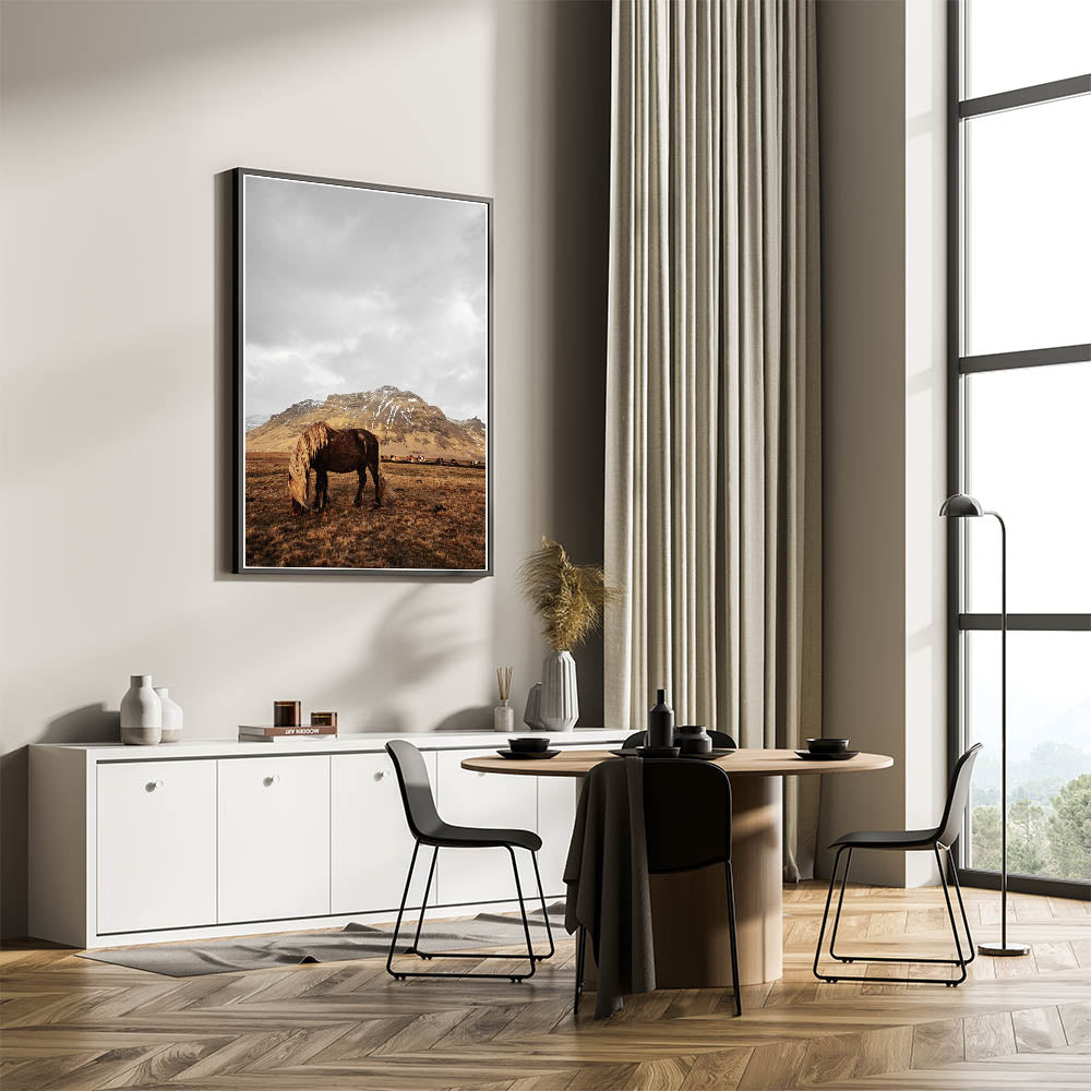 - High-quality print that brings out the detailed textures of the horse and the rugged mountain landscape.