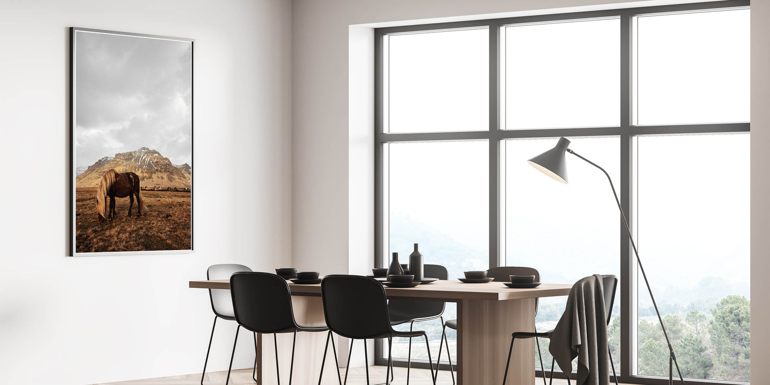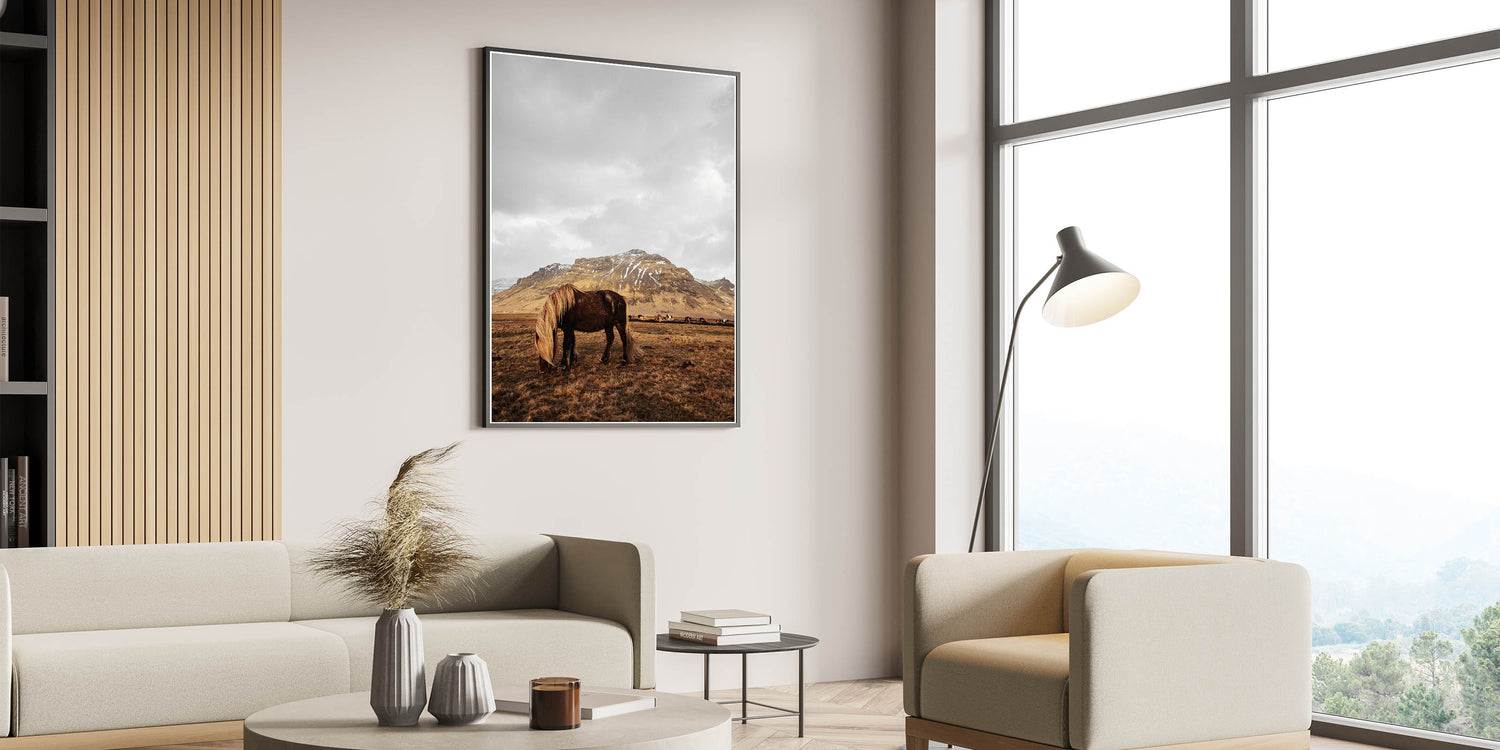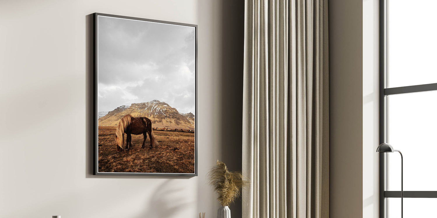- High-quality print that brings out the detailed textures of the horse and the rugged mountain landscape.
