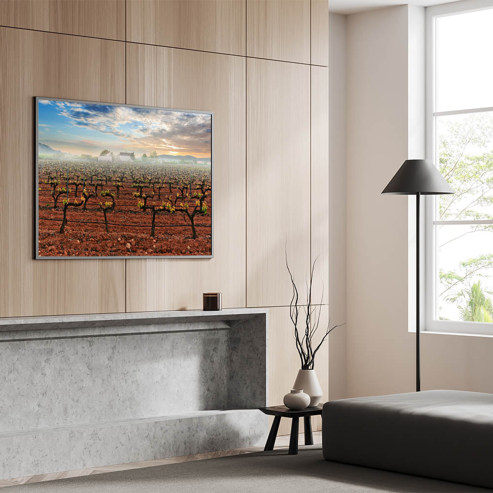 Experience the tranquil beauty of Valencia’s countryside with this breathtaking wall art capturing a vibrant sunrise over a sprawling vineyard. This high-quality Valencia landscape art celebrates the natural beauty of rural Spain, perfect for adding warmth and color to your living space. The vineyard, bathed in the soft morning light, offers a peaceful reminder of the agricultural charm that defines the region.