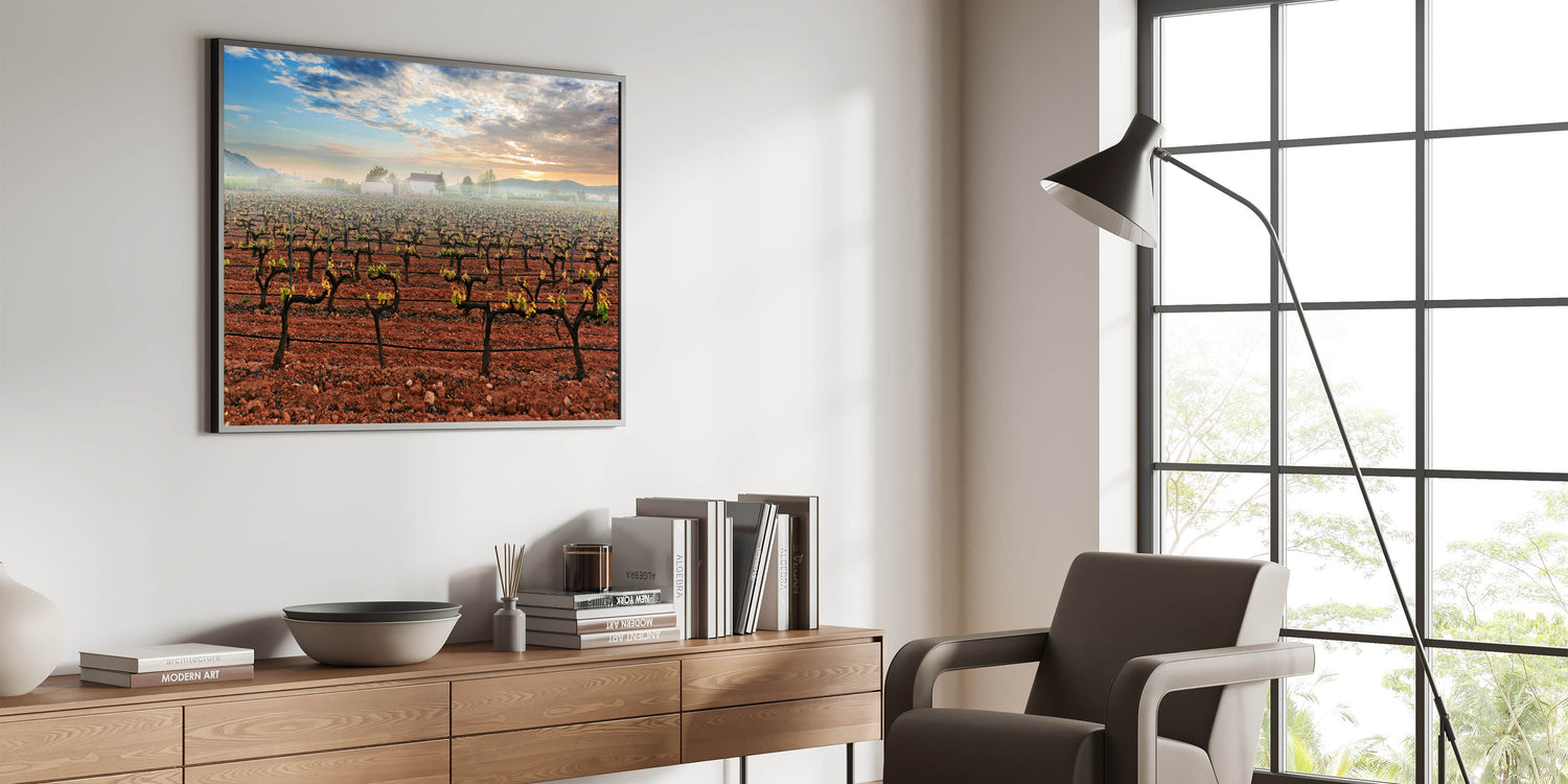 Bring a piece of Valencia’s scenic landscape into your home with this stunning vineyard sunrise print. It’s a perfect addition to any room and a great way to celebrate the beauty of Spain’s countryside.
