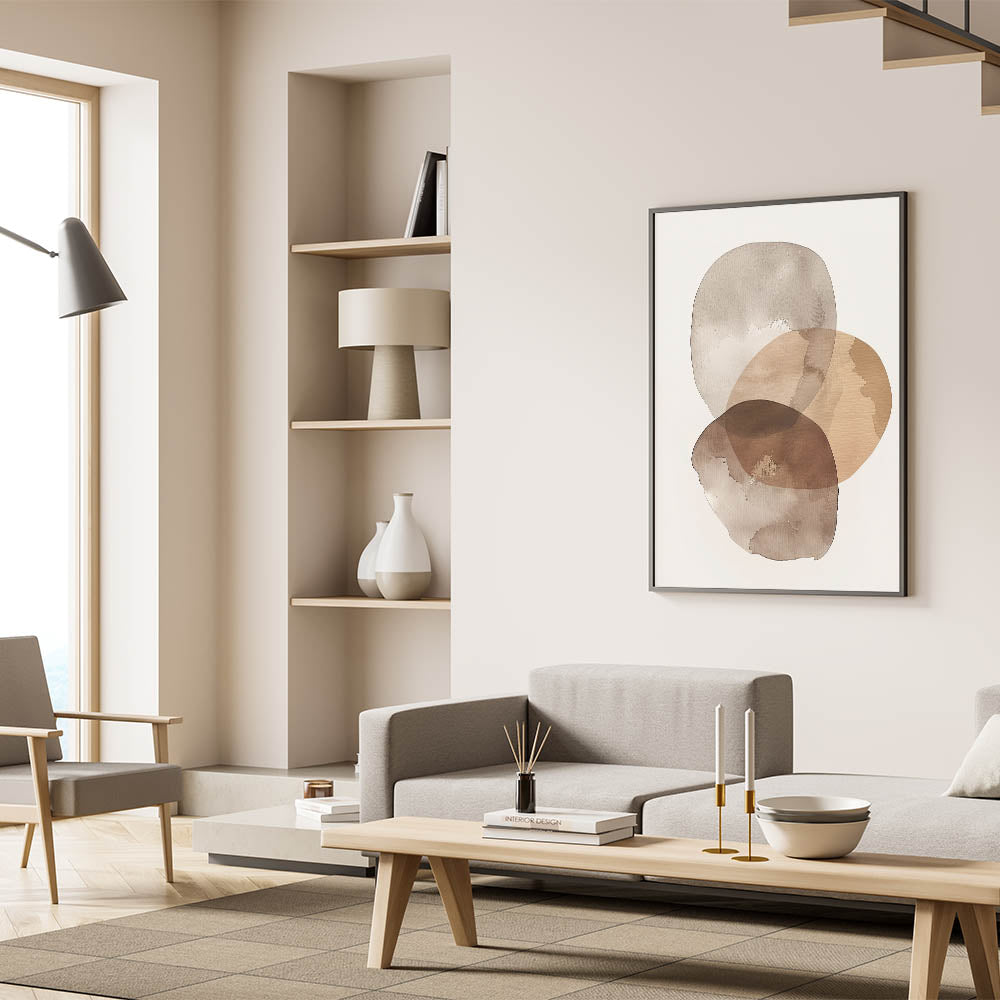 Add warmth and tranquility to your space with this Soft Neutral Abstract Art. Featuring layered organic shapes in warm beige and taupe hues, this minimalist piece exudes a calming, earthy feel. The subtle overlapping forms and neutral palette make it perfect for modern and rustic interiors, bringing a touch of nature-inspired elegance to any room.