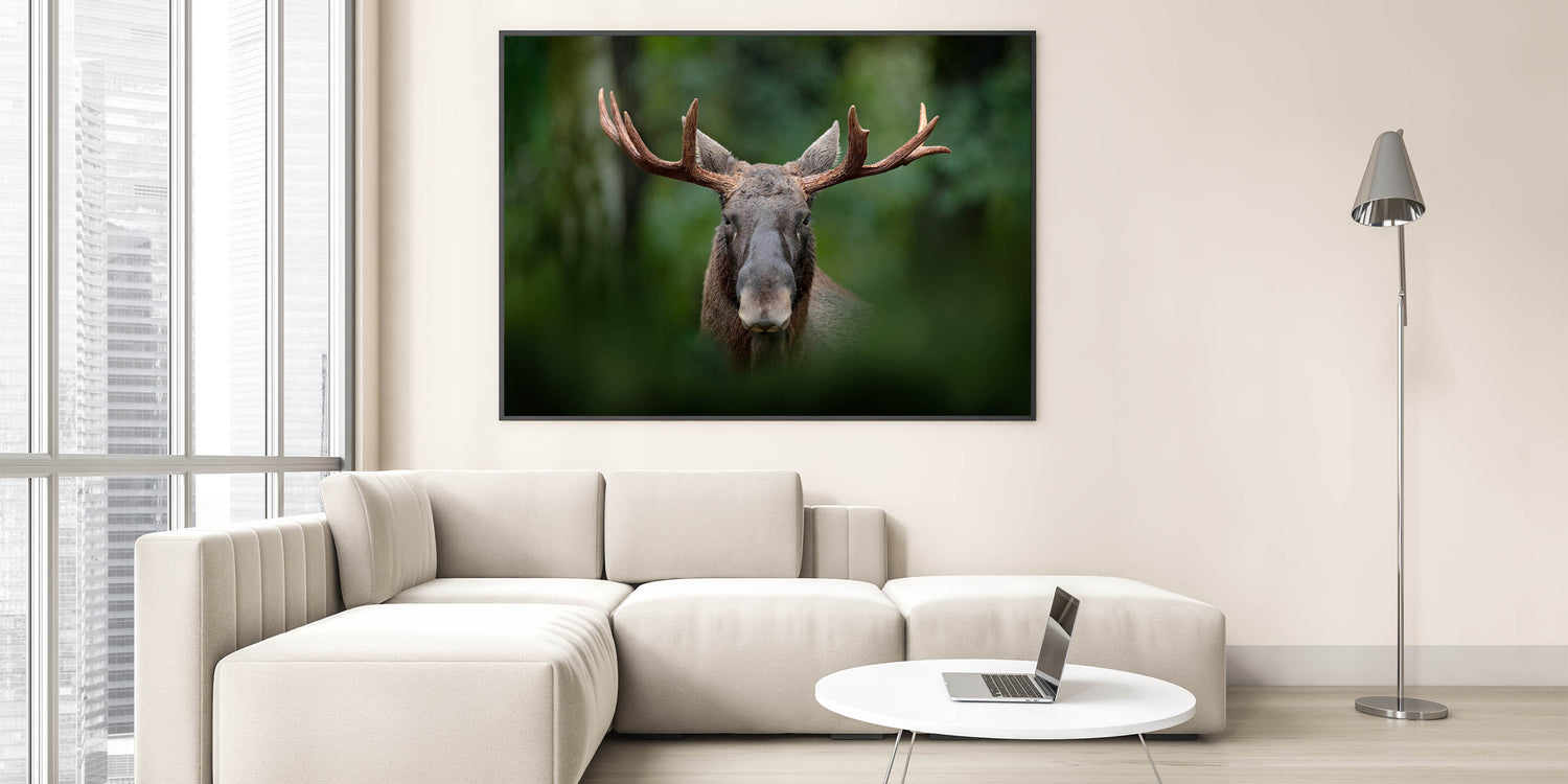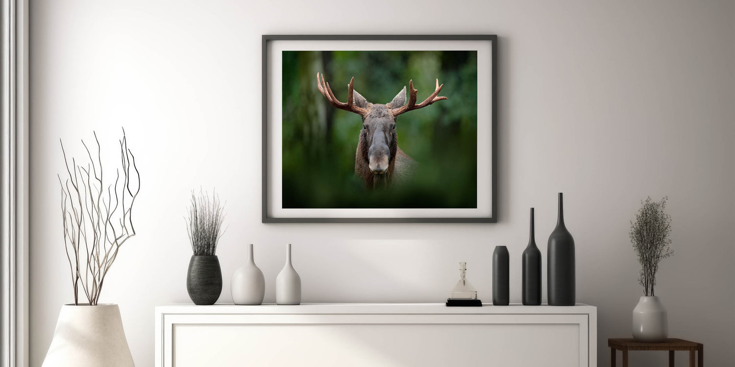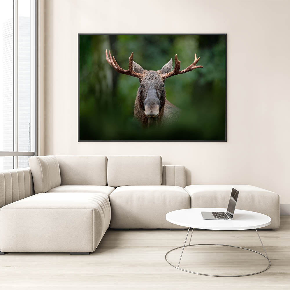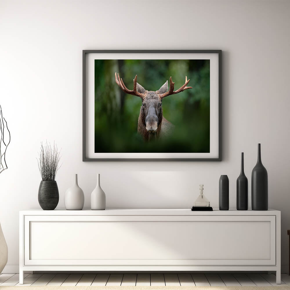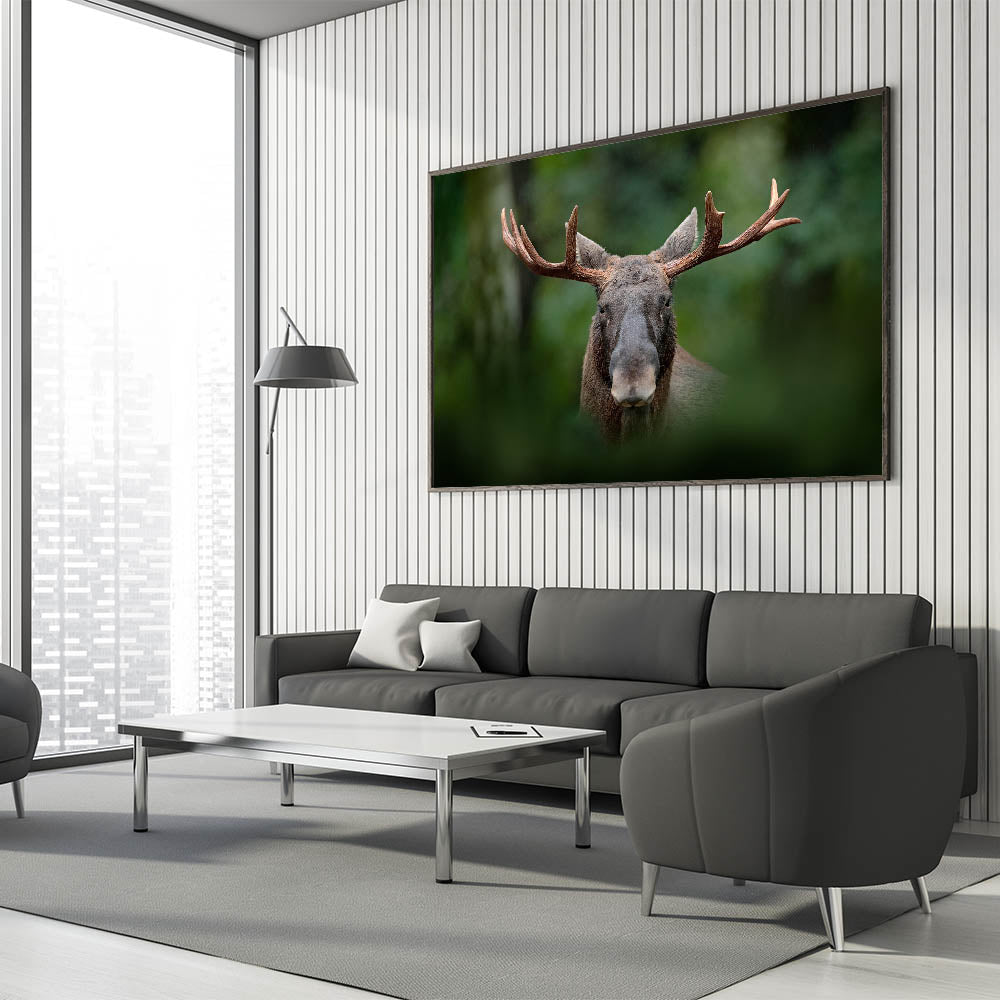 This Swedish wildlife art is perfect for adding a rustic yet elegant feel to your living room, office, or cabin. Whether you prefer a framed print or canvas, this majestic moose will bring the beauty of the Nordic wilderness into your decor.