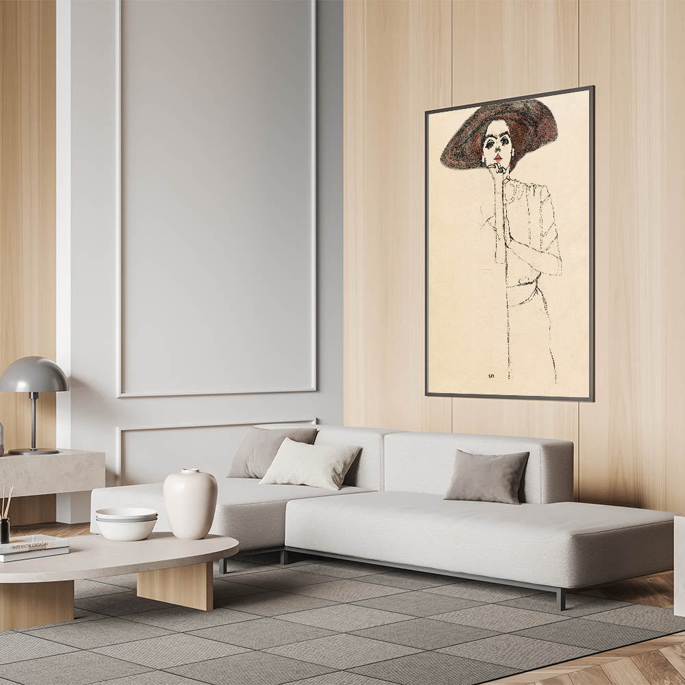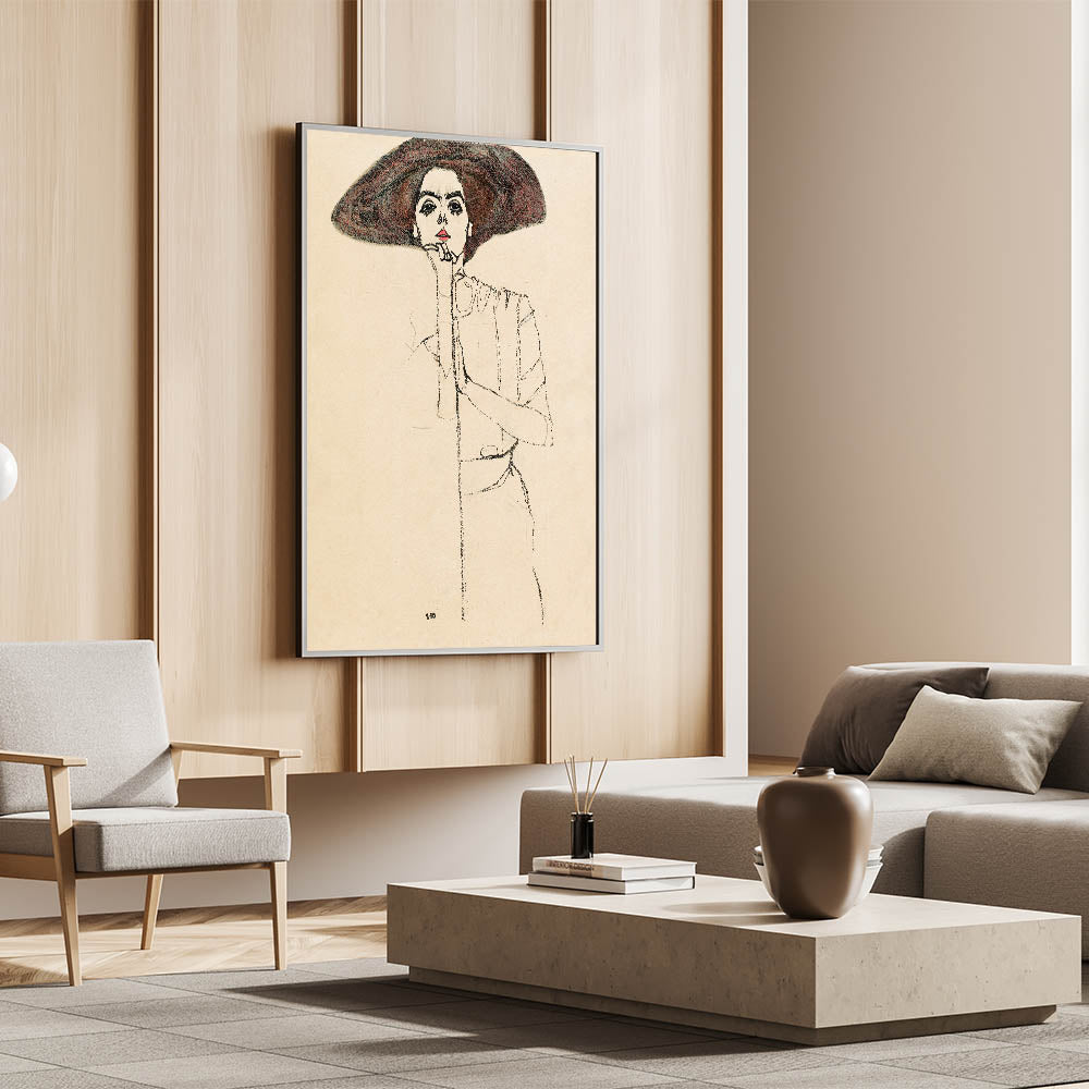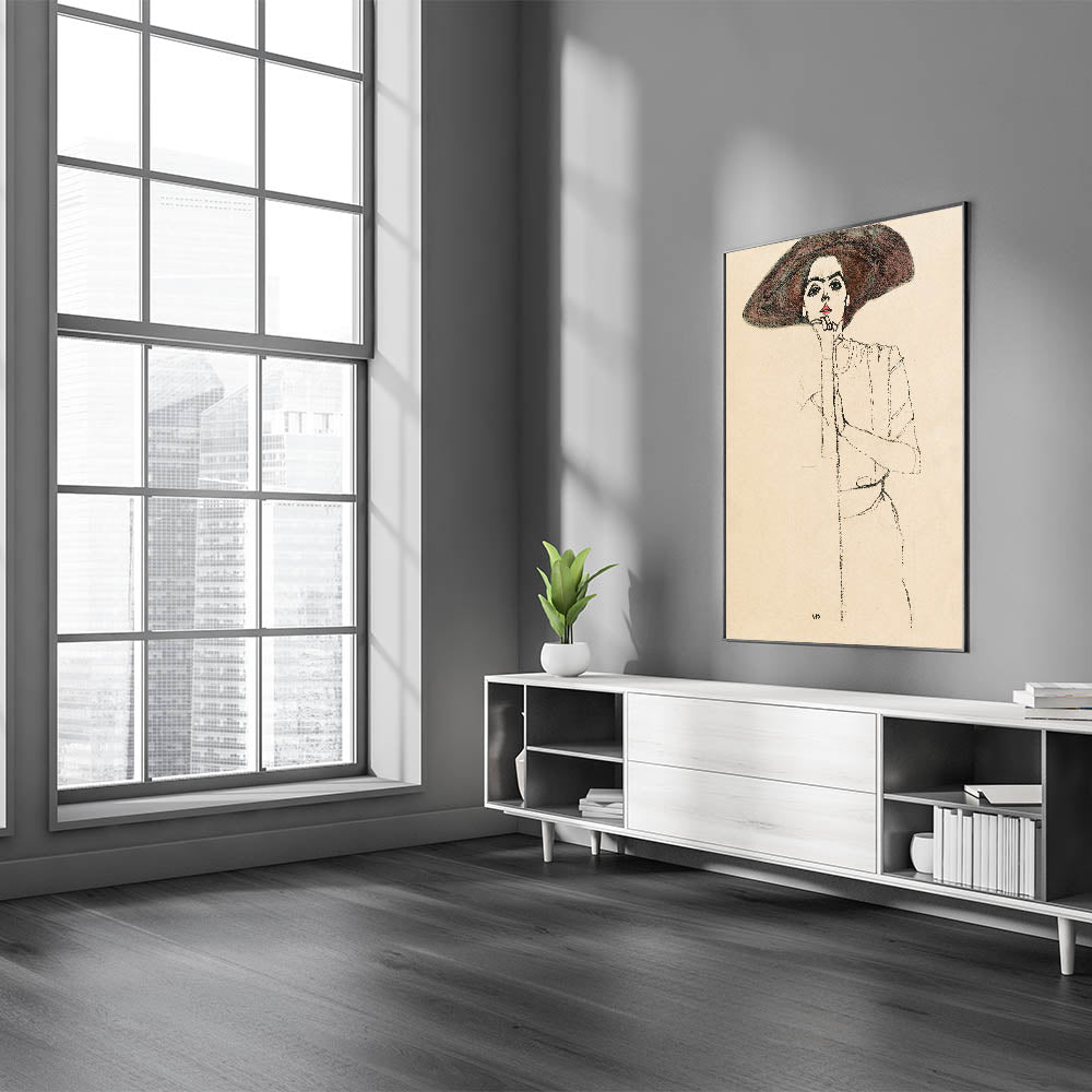 Timeless Art Deco Wall Art - Minimalist Woman in Large Hat Illustration