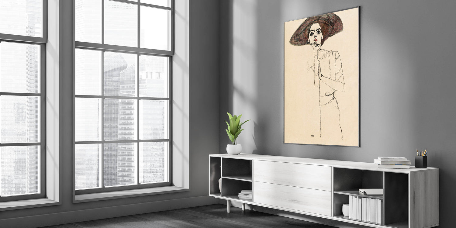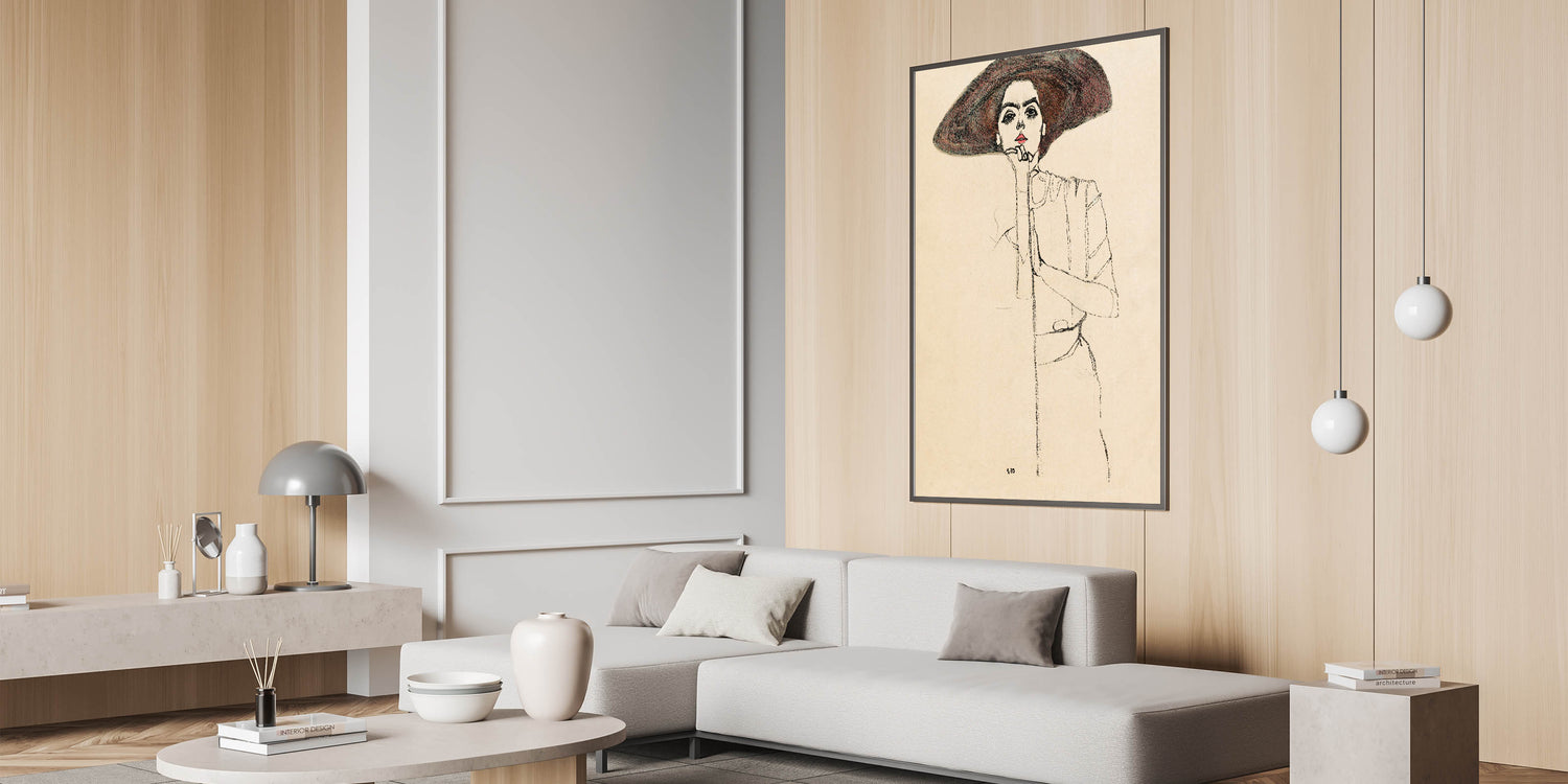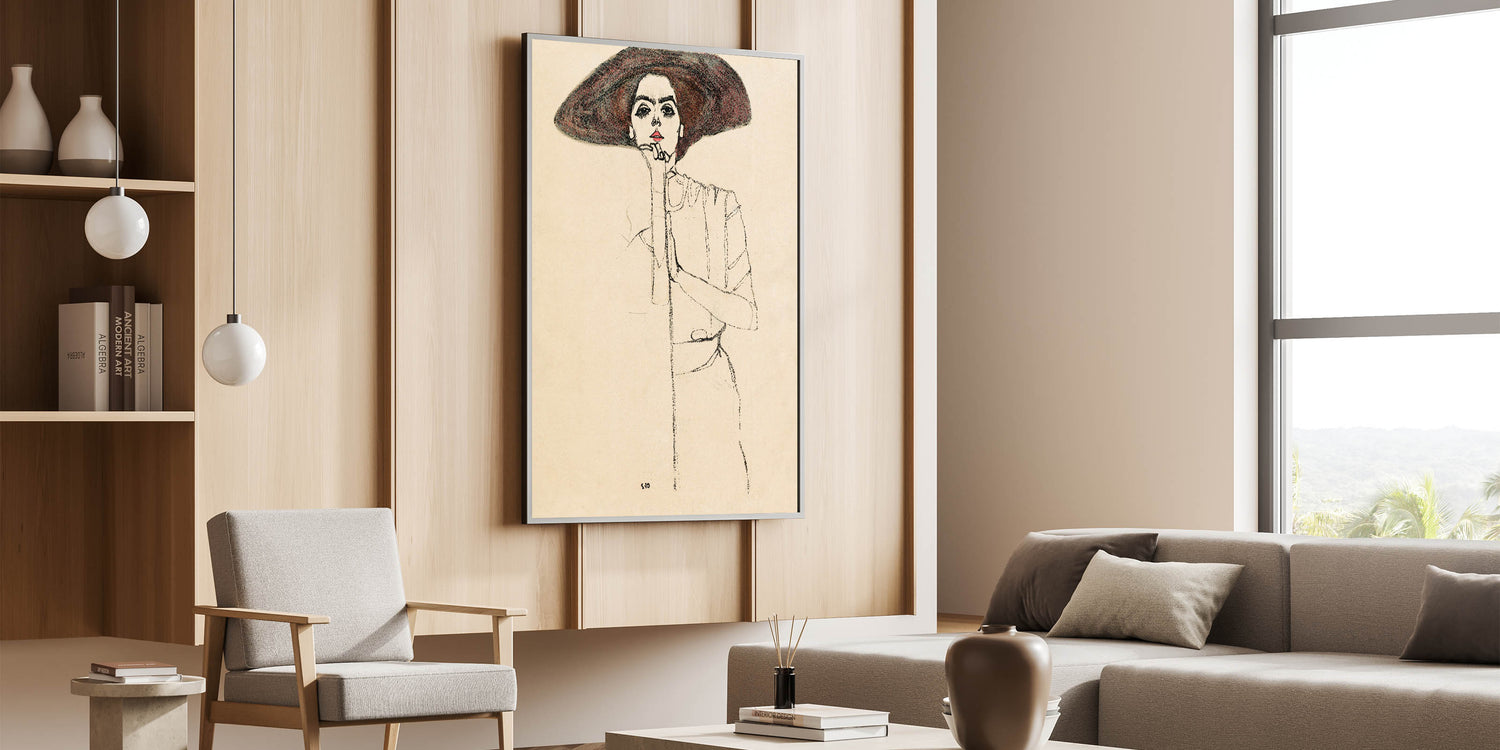Timeless Art Deco Wall Art - Minimalist Woman in Large Hat Illustration