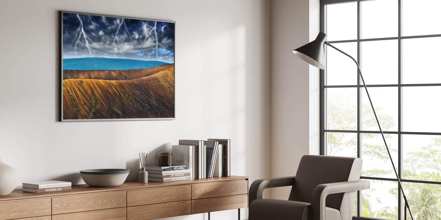 Elevate your space with this powerful representation of Ukraine scenery from our Europe Scenery Collection. Whether you choose a framed art option or a sleek acrylic glass, this thunderstorm scene will transform your decor with bold, natural beauty.