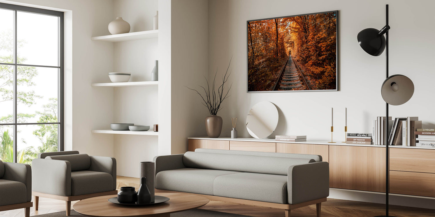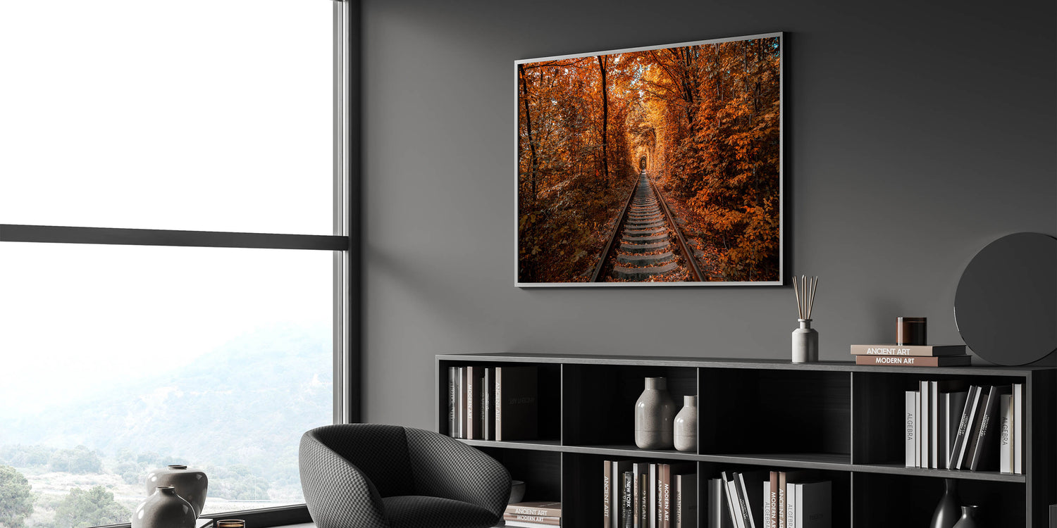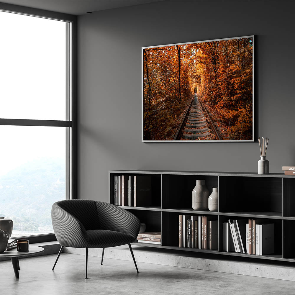 Embrace the warm beauty of autumn with this stunning Ukrainian Landscape Art showcasing the famous Tunnel of Love in vibrant fall colors. The golden and orange leaves frame the railway tracks, creating a magical passage through nature. This artwork captures the essence of Ukraine’s natural beauty, especially during the autumn season, and brings a sense of tranquility and warmth to any space.