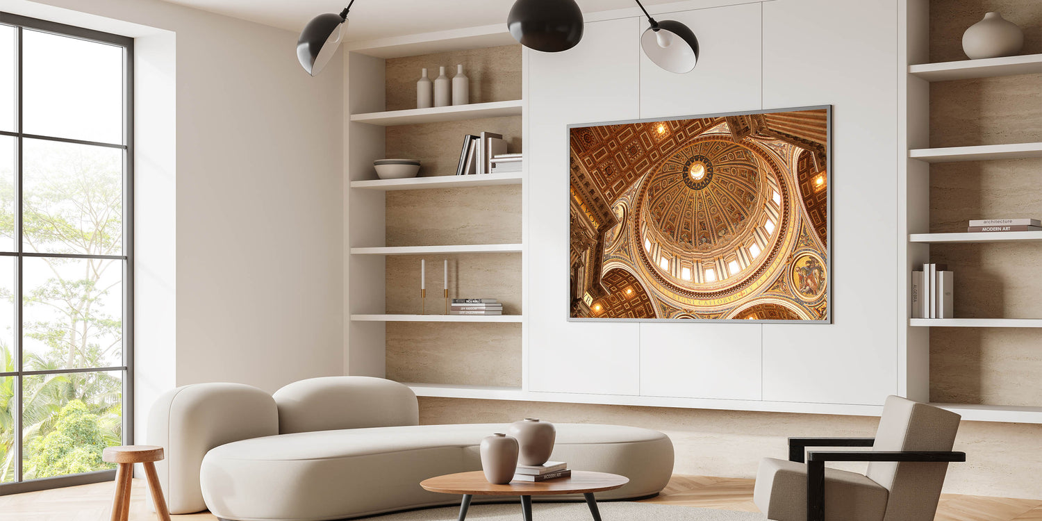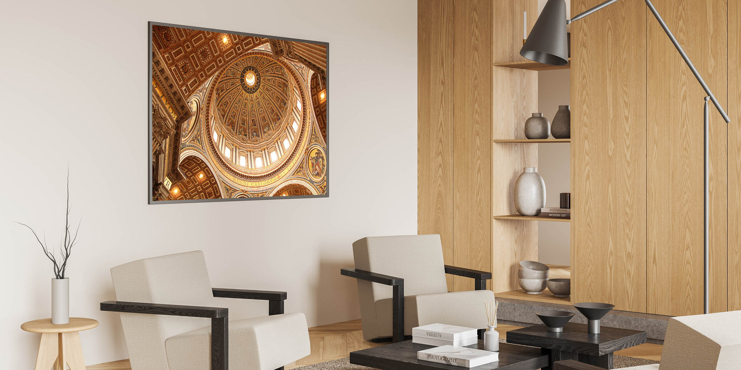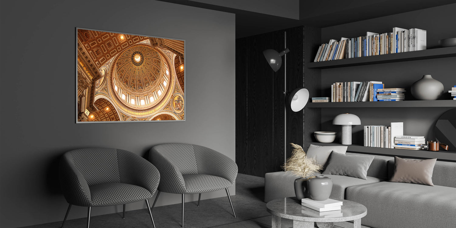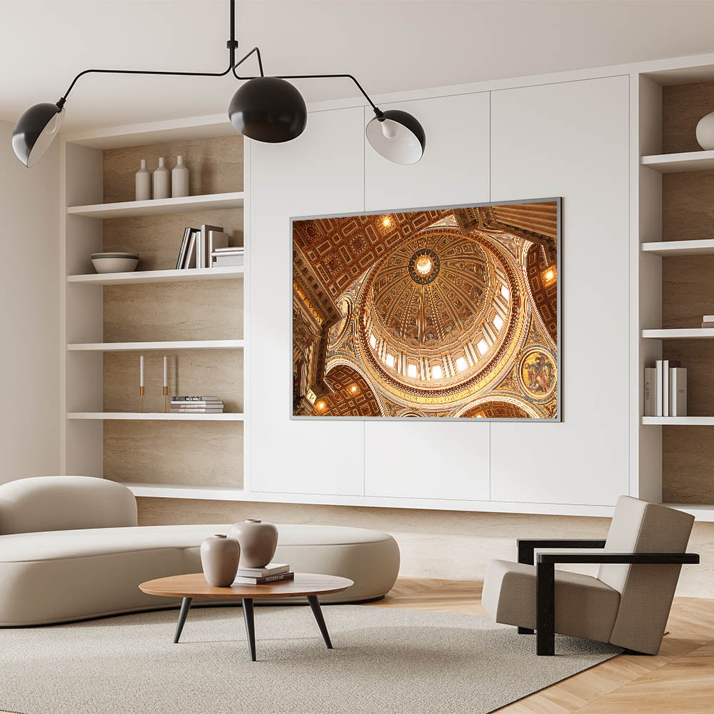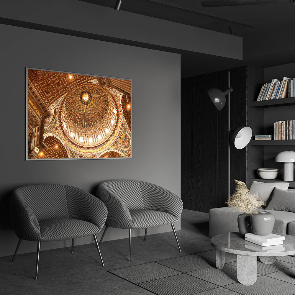 Bring the majestic beauty of St. Peter's Basilica into your home with this breathtaking Vatican City wall art. The intricately detailed dome, captured in stunning clarity, highlights the remarkable architecture and spiritual significance of the Vatican. This European scenery wall art is a perfect addition for those looking to add historical charm and cultural significance to their decor.