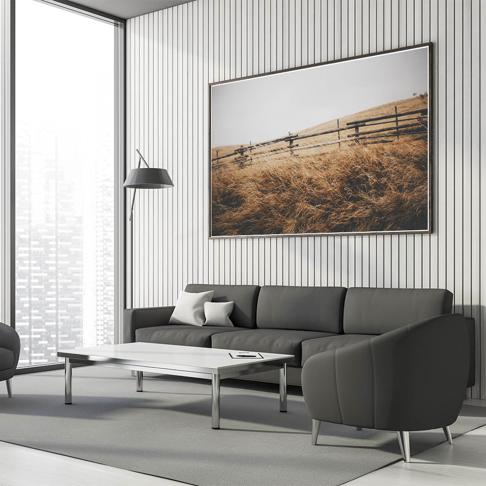 This rustic wall art captures the quiet beauty of windblown prairie grass swaying in the breeze. The soft golden tones of the grass blend harmoniously with the simple wooden fence, evoking a sense of peace and solitude that’s perfect for anyone seeking to bring a touch of nature into their home. This serene landscape is ideal for farmhouse-style decor, offering a timeless depiction of rural simplicity.