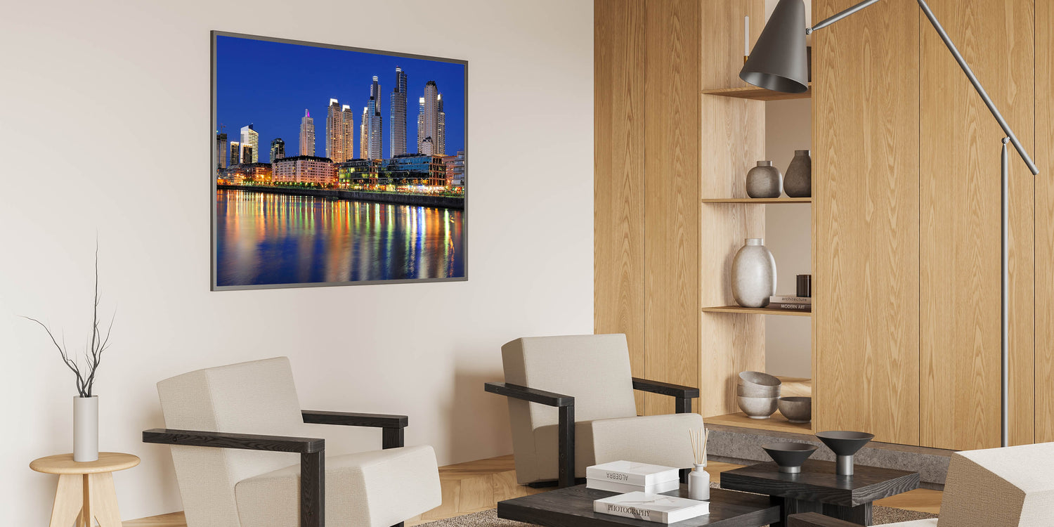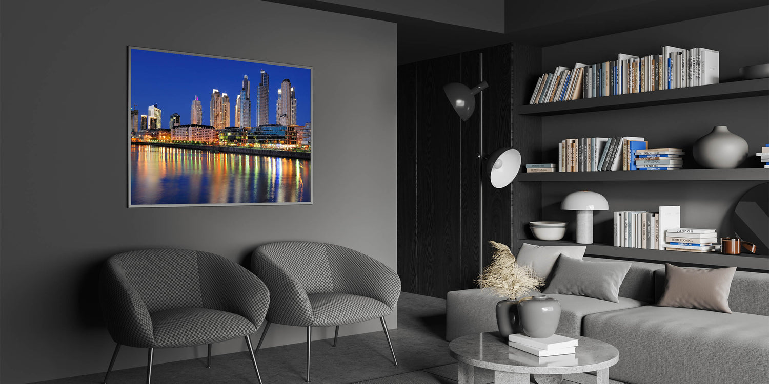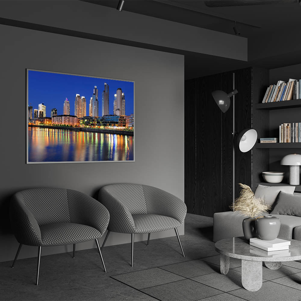 This wall art is a testament to the lively spirit of one of South America’s most iconic cities. It’s perfect for urban art lovers and those who appreciate cityscapes filled with light and energy. Make a bold statement in your decor with this stunning portrayal of Buenos Aires by night.