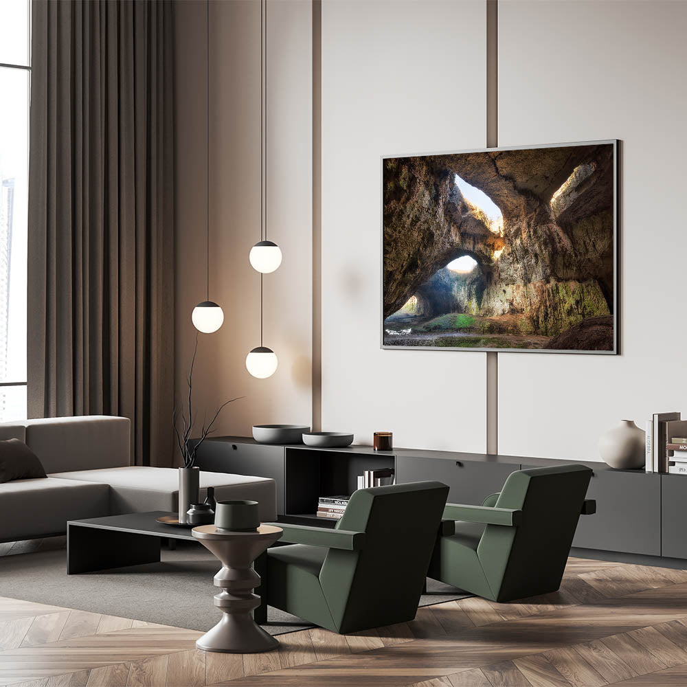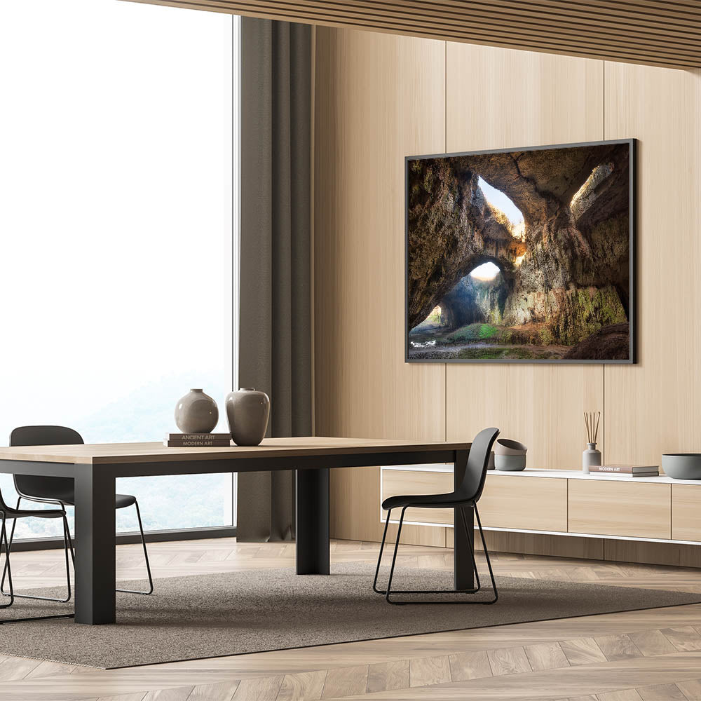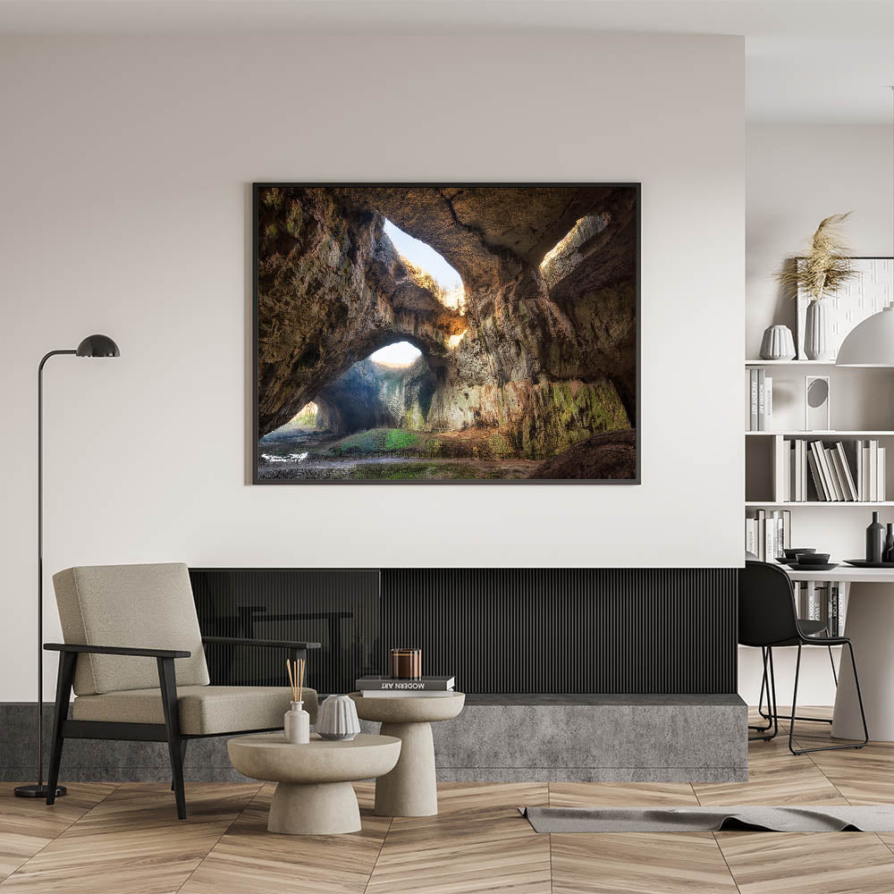- High-definition print showcasing the grandeur of Devetashka Cave with its magnificent natural light.