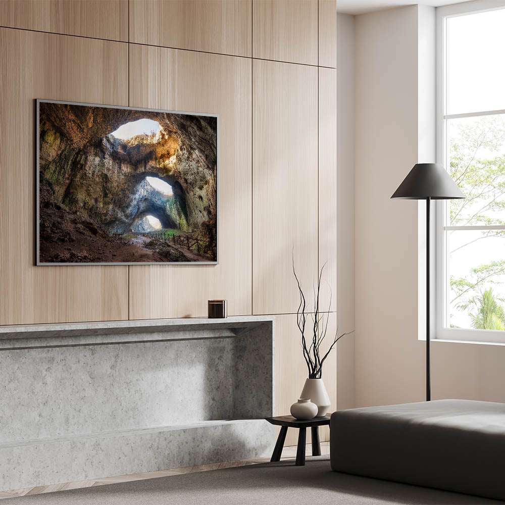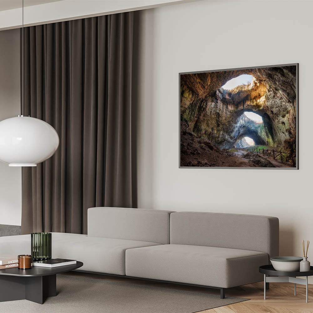 This stunning wall art captures the majestic beauty of Devetashka Cave, one of Bulgaria's most awe-inspiring natural wonders. The expansive arches and dramatic lighting create an atmosphere of mystery and grandeur, making this piece a perfect addition to any nature-inspired decor. Whether you’re an admirer of geological formations or looking to bring a touch of Bulgarian nature into your space, this print offers both visual impact and cultural significance.