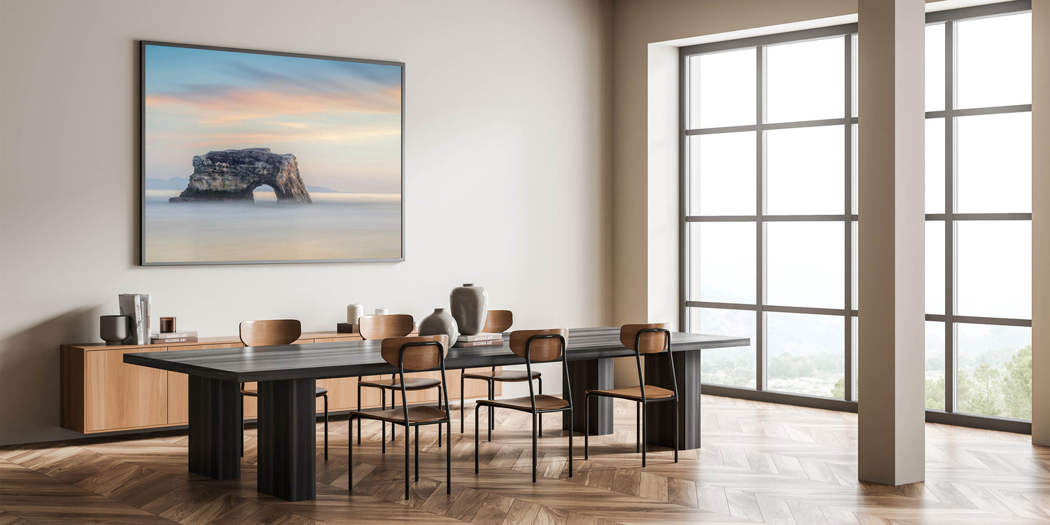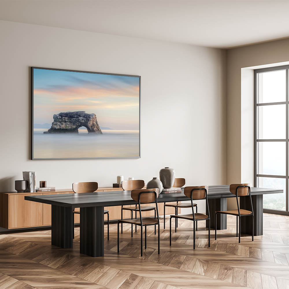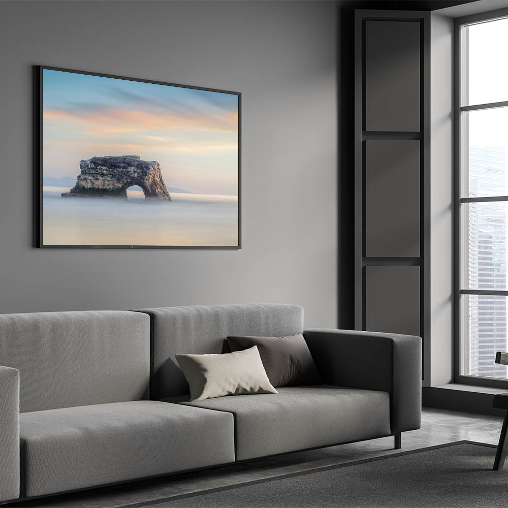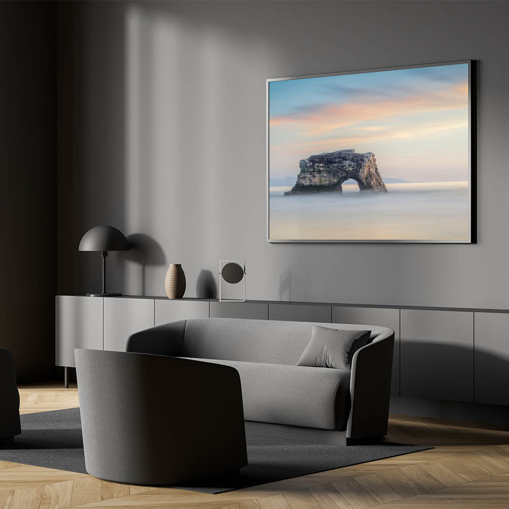 Bring the serene and misty atmosphere of the California coastline into your home with this beautiful Santa Cruz coastal arch. Its soft colors and peaceful ambiance will elevate your space and create a relaxing, beach-inspired vibe.