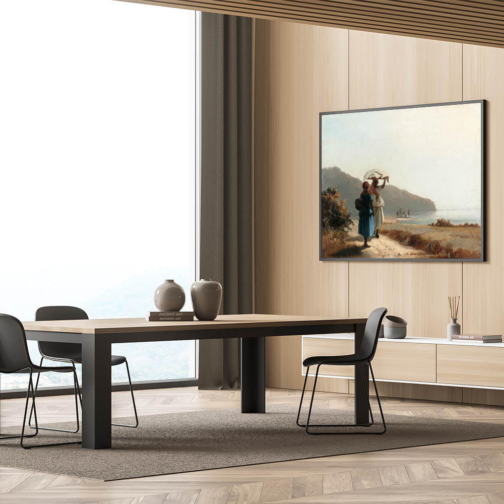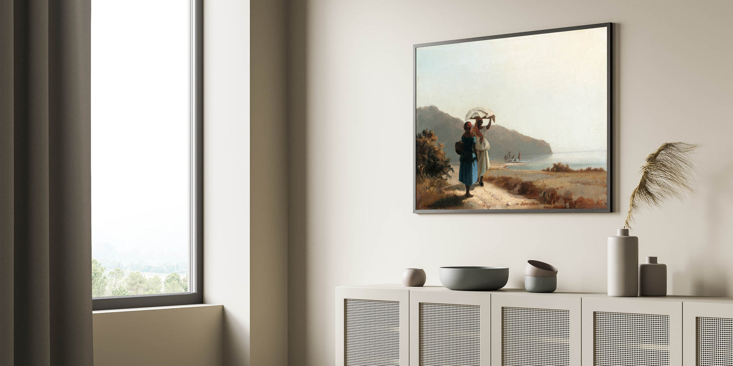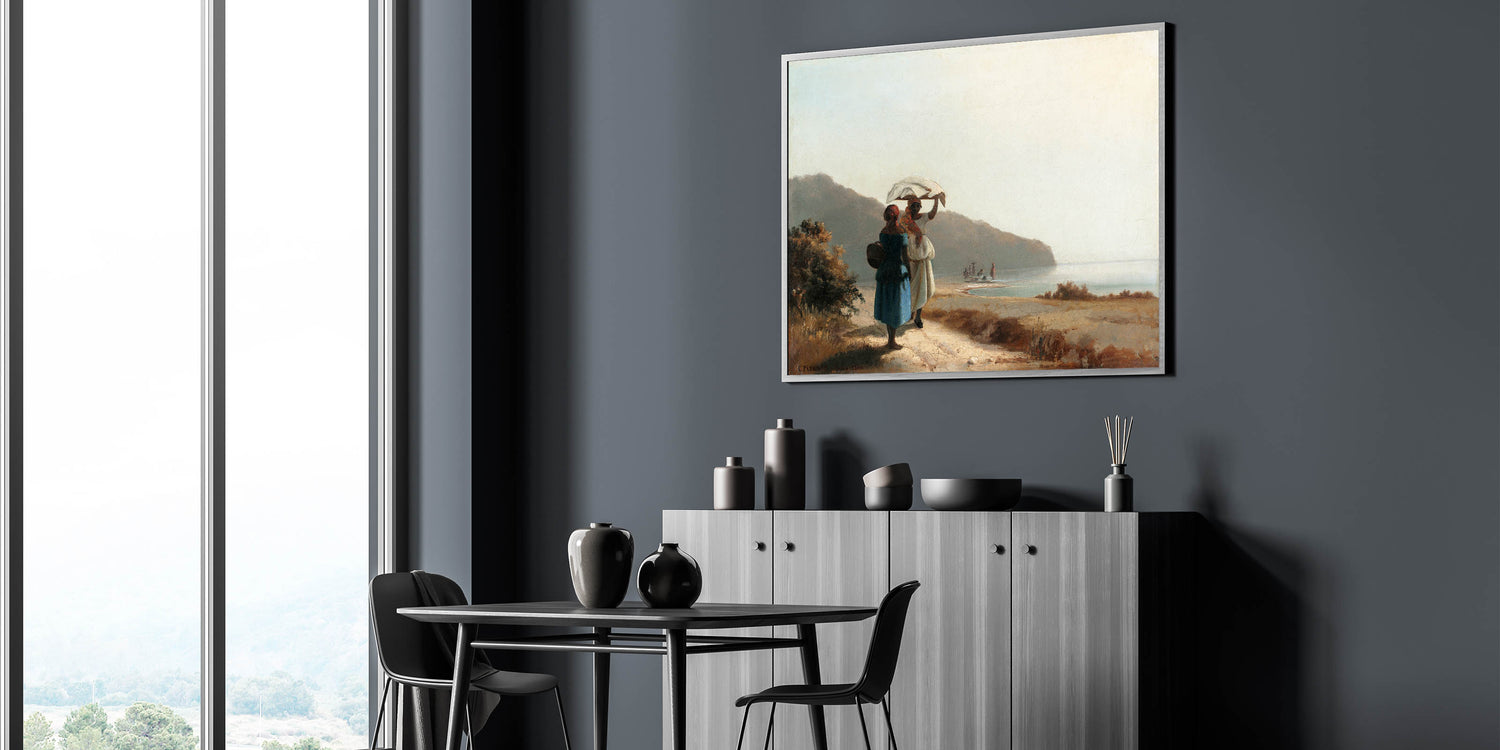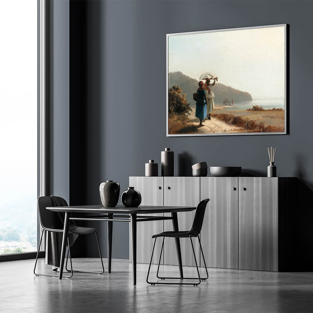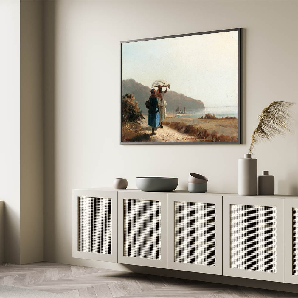 Transport yourself to the shores of the Caribbean with this captivating coastal scene by Camille Pissarro. In this beautifully serene painting, two women walk along a sandy path under the gentle warmth of the sun. The vast sky and calm waters blend harmoniously, creating a peaceful and reflective atmosphere. Pissarro’s use of light and subtle tones showcases his mastery of Impressionist art, capturing the essence of the Caribbean coast with grace and tranquility.