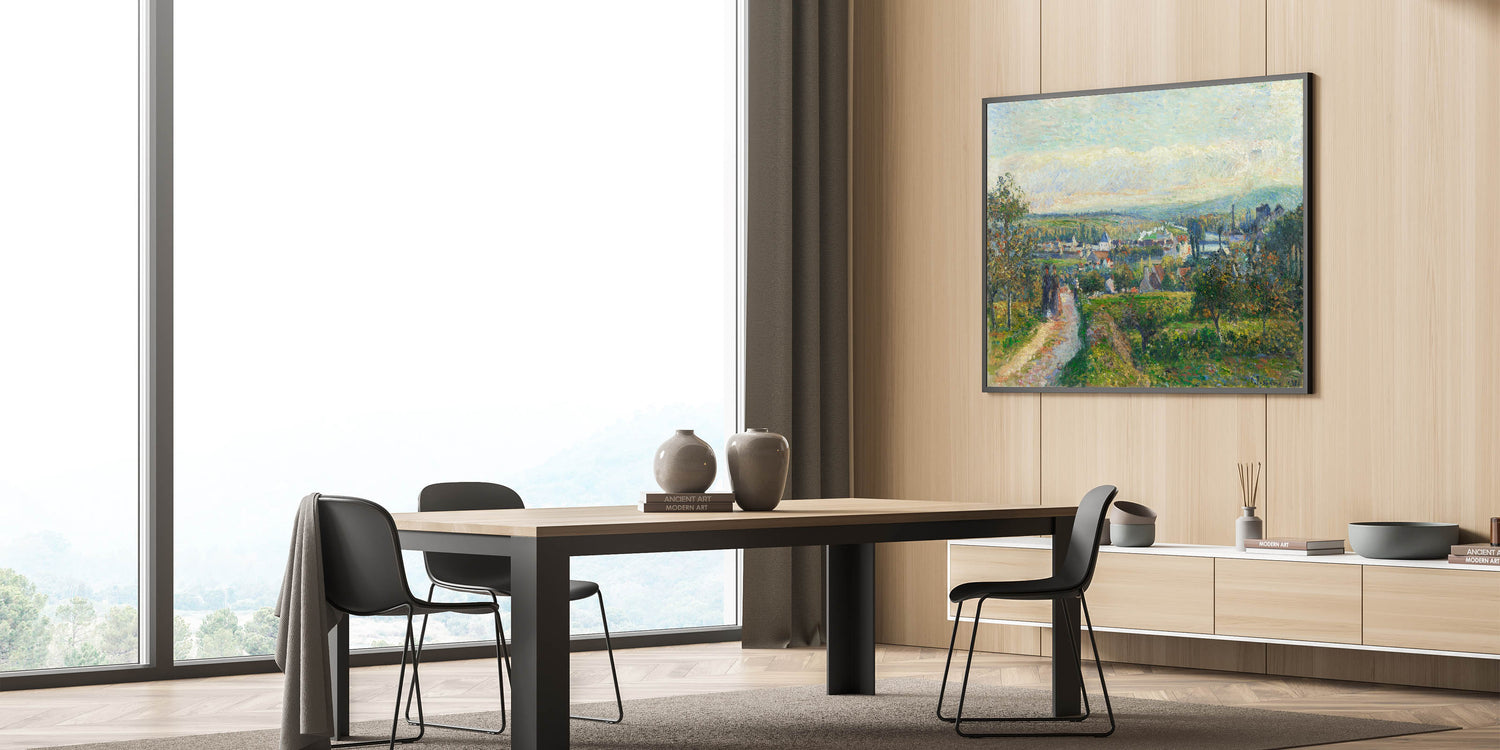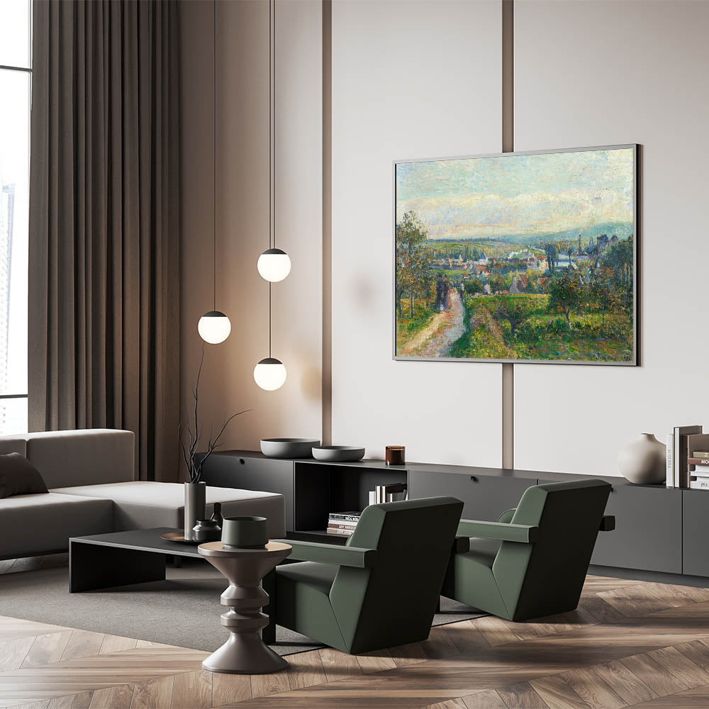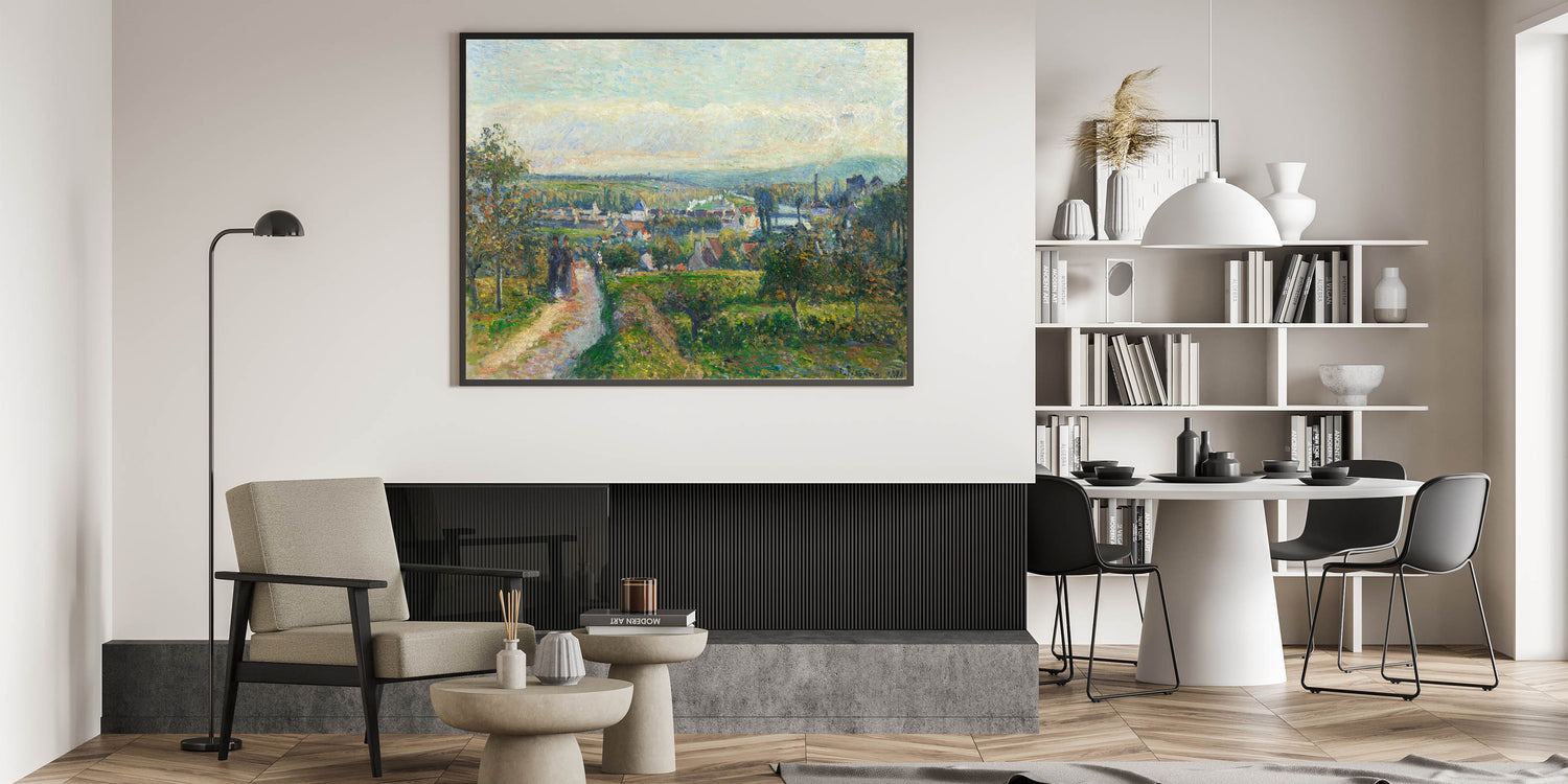 Experience the peaceful beauty of rural life with Camille Pissarro’s Village in the Countryside (1887). This impressionist masterpiece captures the idyllic charm of the French countryside, where lush greenery and vibrant landscapes stretch across the horizon. Pissarro's paintings are celebrated for their ability to depict light and atmosphere, and this artwork showcases his skill in bringing nature to life with delicate brushstrokes and vivid colors.