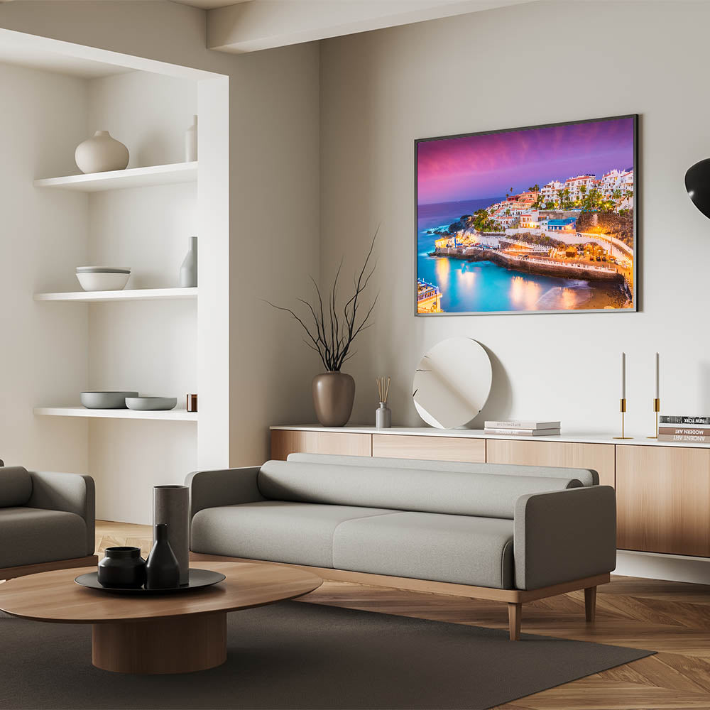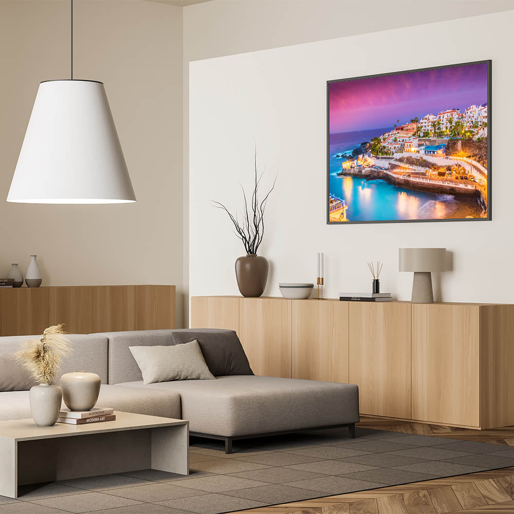 • Available in multiple formats: framed print, stretched canvas, acrylic glass