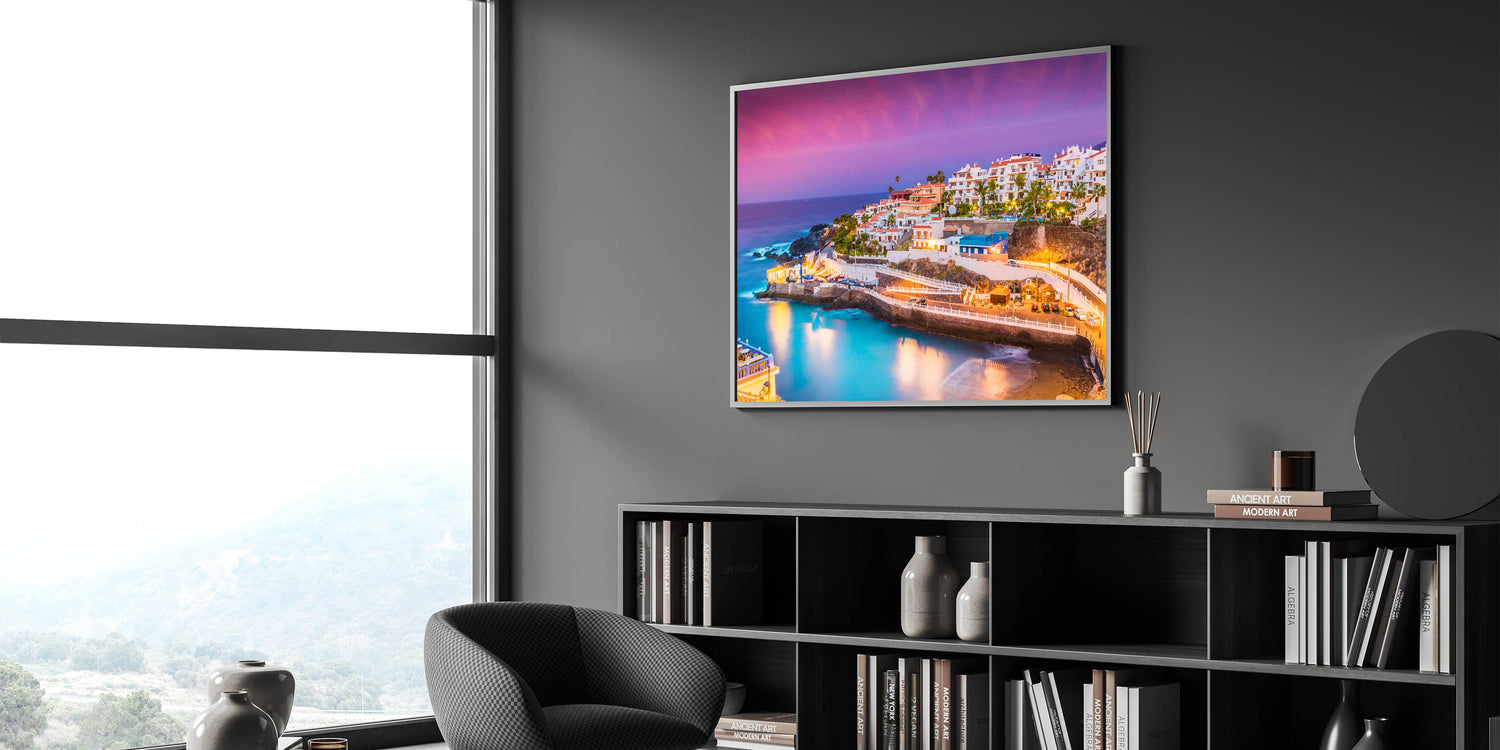 This stunning Canary Islands photography print will add a touch of island charm to your living space. Whether as a framed art piece or on canvas, this vibrant sunset scene will brighten any room with its radiant colors.