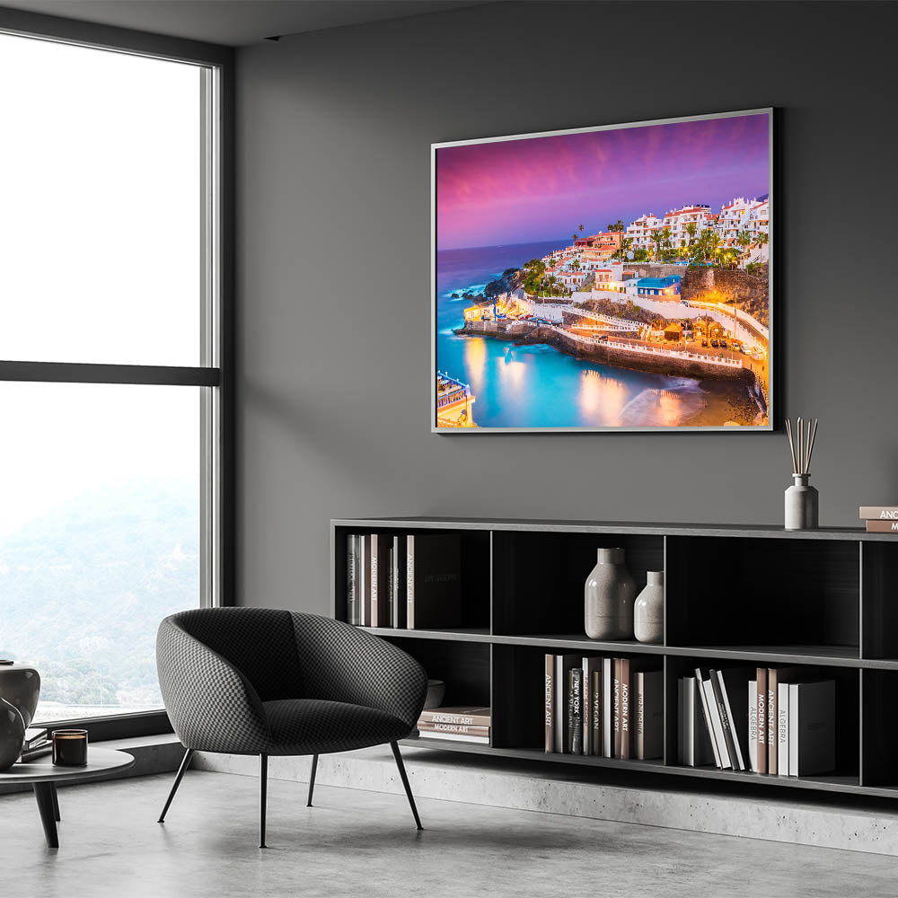 Canary Islands Framed Art – Vibrant Coastal Town at Sunset Scene