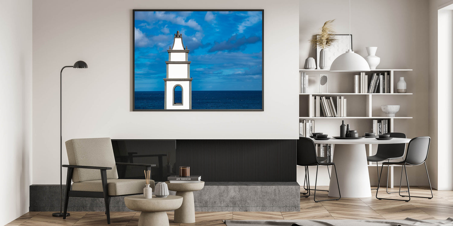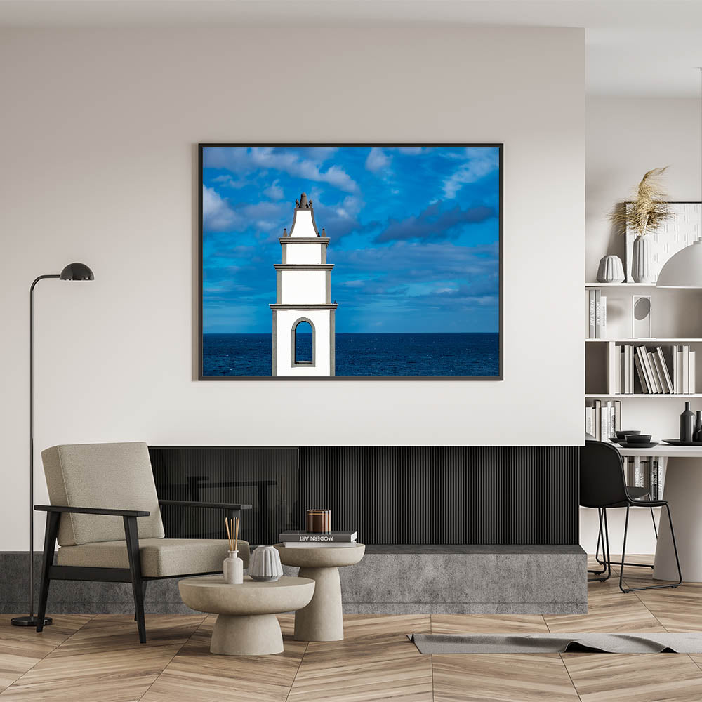 Add a touch of minimalist elegance to your home with this stunning Canary Islands wall art featuring a striking coastal structure against the deep blue sky and ocean. This art print beautifully captures the clean lines of the white building, highlighting its contrast with the vast blue expanse of sea and sky. Perfect for those who appreciate simplicity and modern aesthetics, this piece brings a sense of calm and serenity to any space.