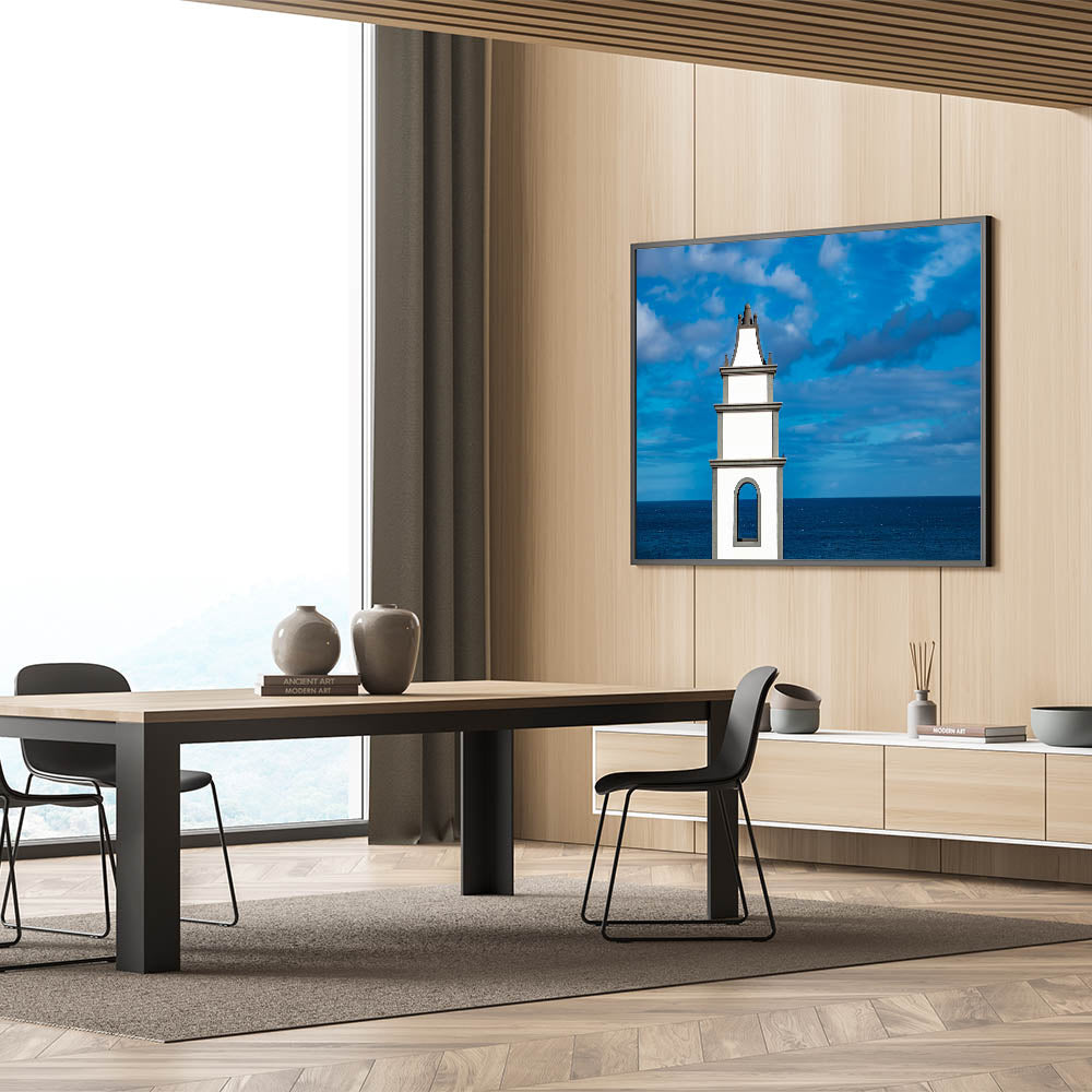 Transform your living space with this elegant piece of Canary Islands architecture art. Whether displayed as a framed print or canvas, this artwork will add a serene and modern touch to your decor.