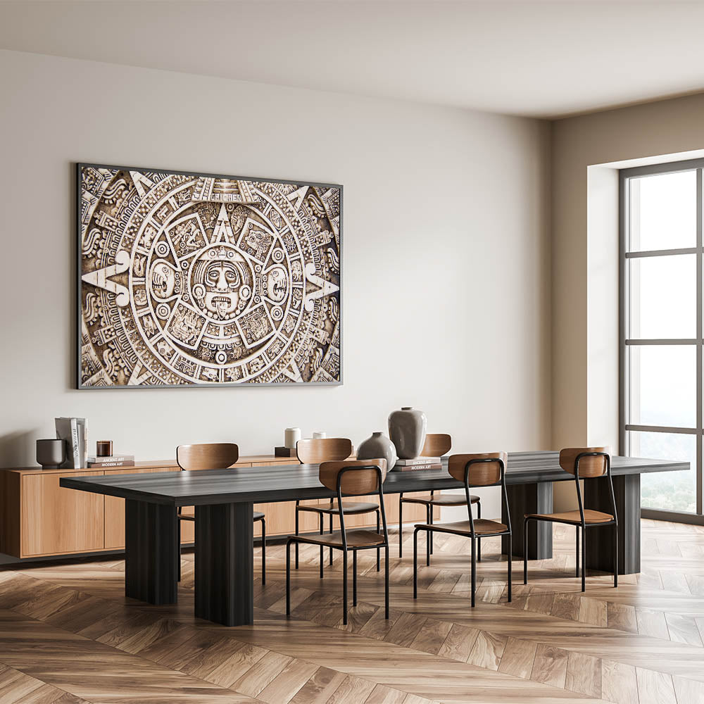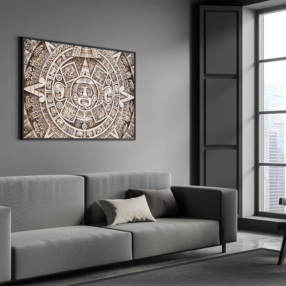 This Mayan calendar photography print is a timeless piece that will enhance any room with its historical essence. The neutral tones of this artwork complement a wide range of interior styles, making it versatile yet impactful.