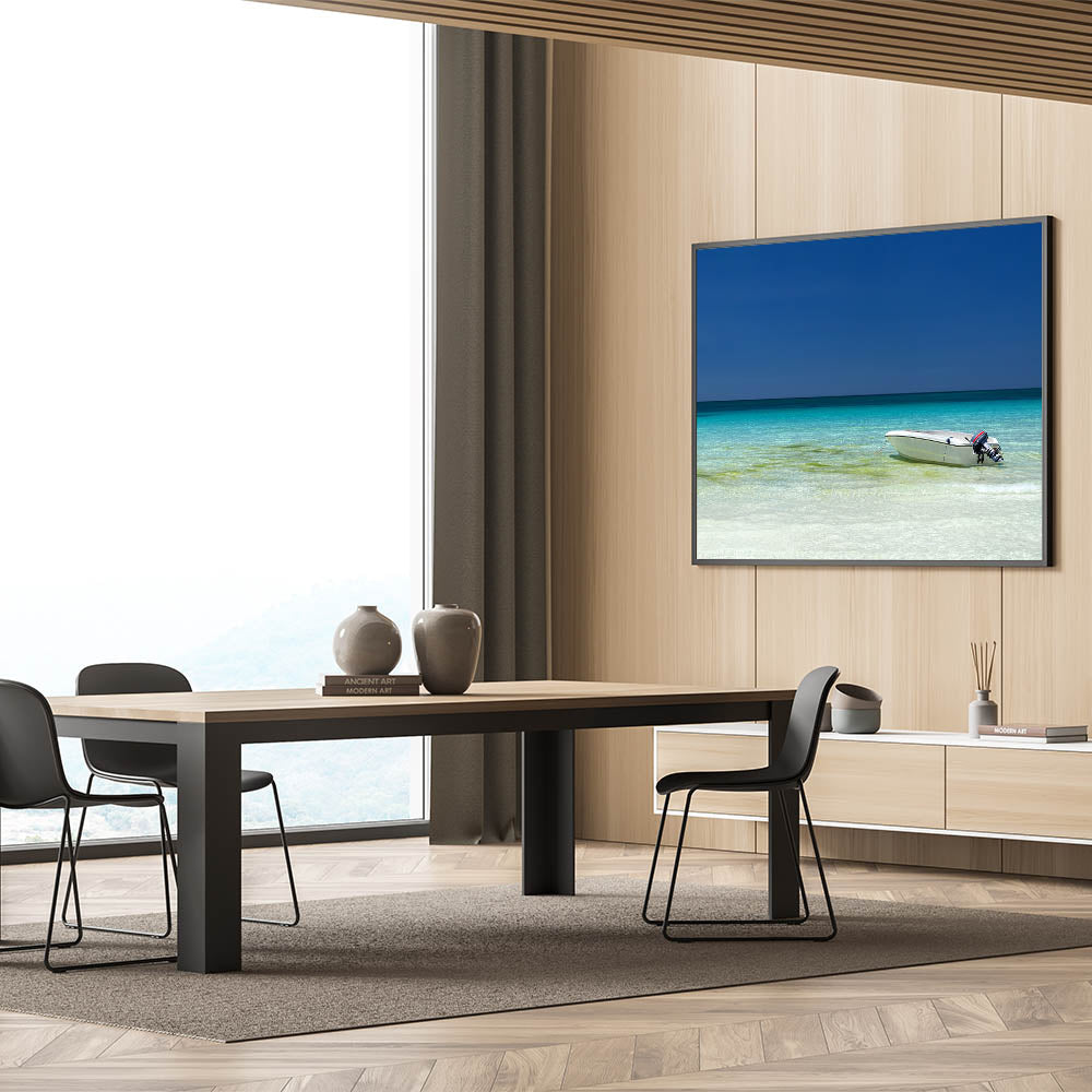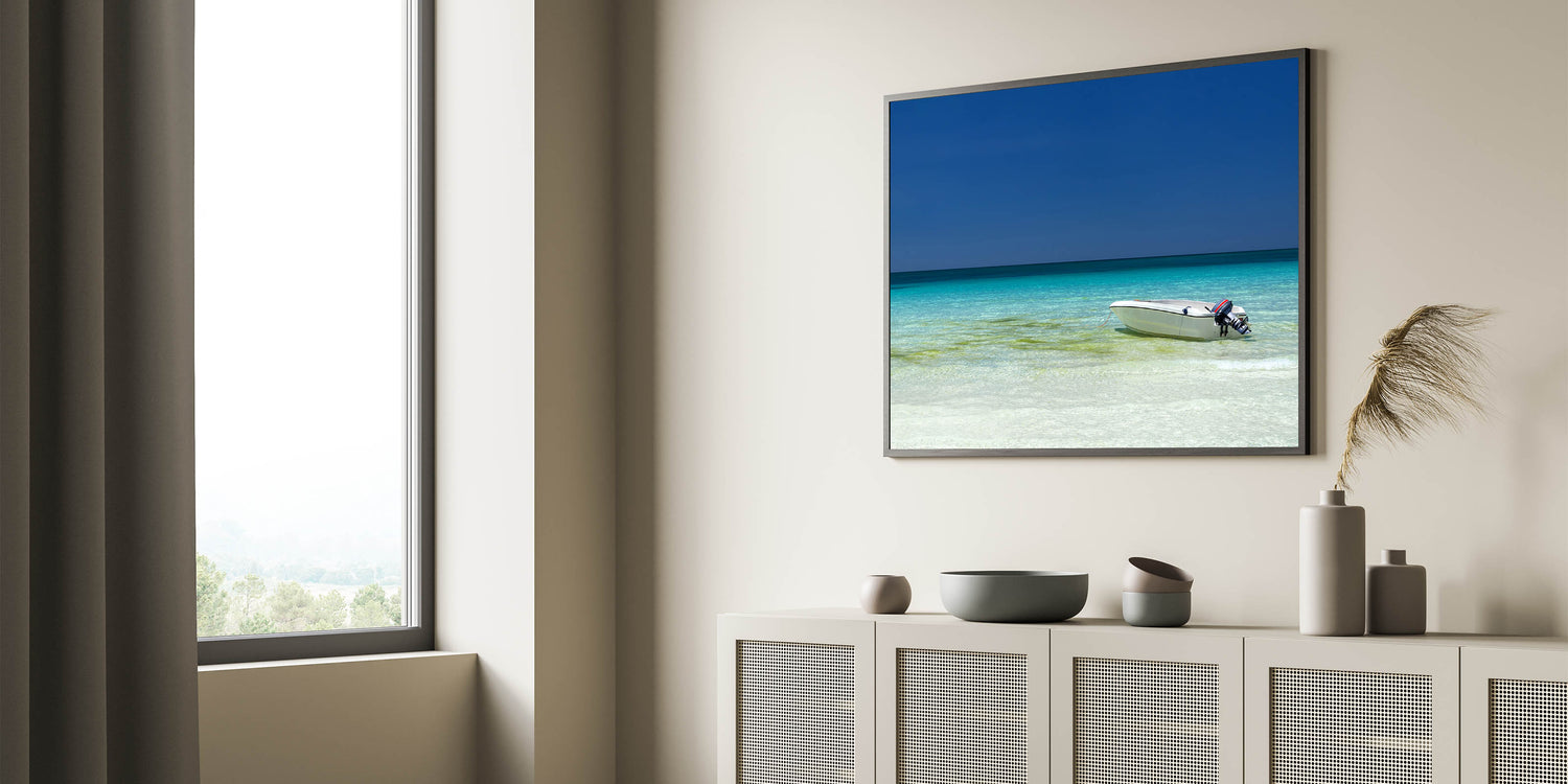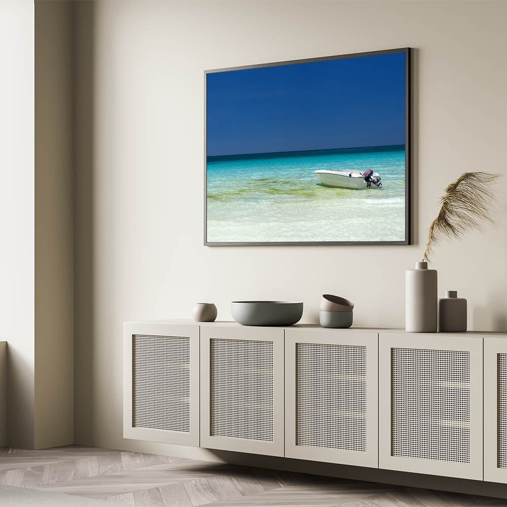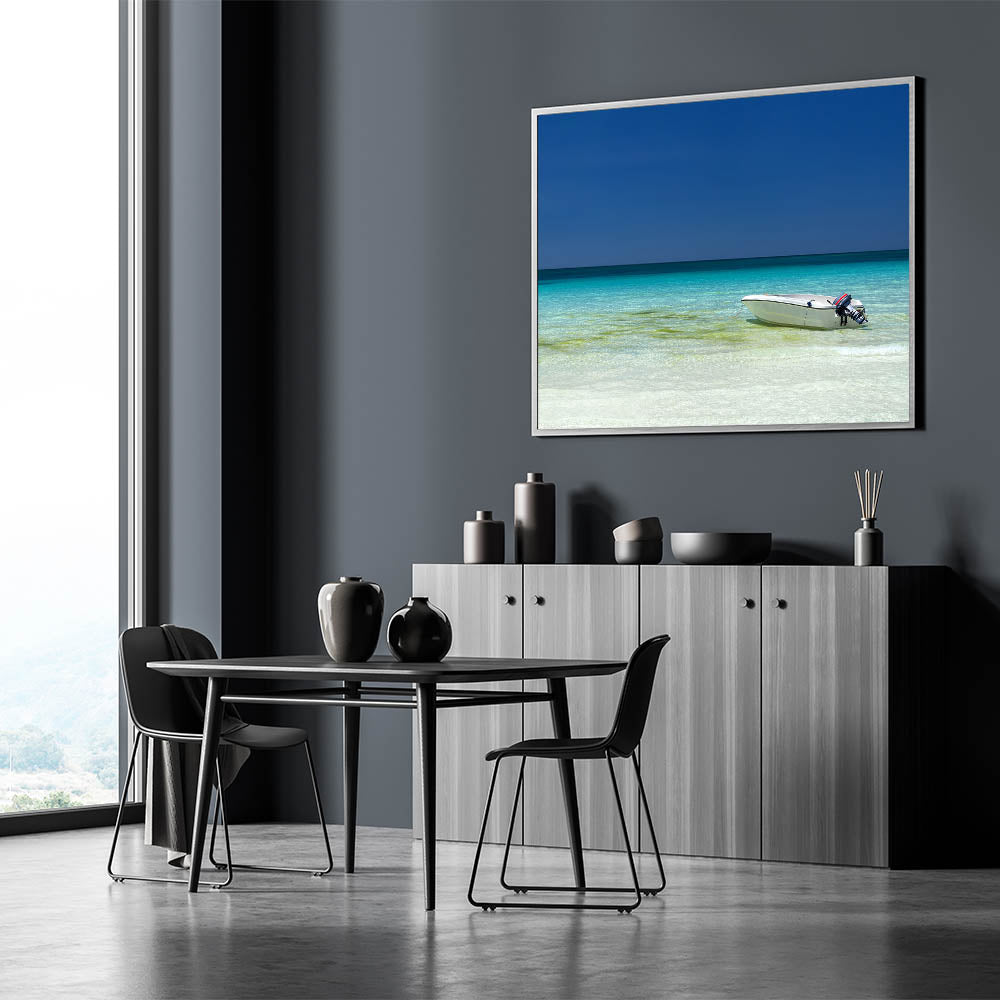 Embrace the tranquility of Cancun with this serene boat wall art. Featuring a lone boat resting in the clear, turquoise waters of Cancun's coast, this beautiful piece of photography evokes a sense of calm and escape. Ideal for tropical and coastal decor themes, this artwork brings the peaceful charm of Mexico’s stunning beaches into your space.