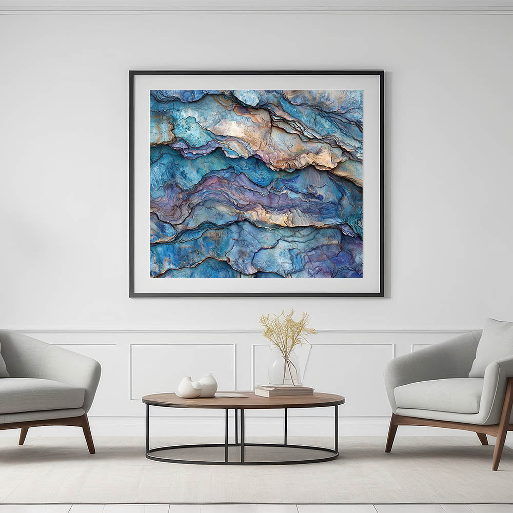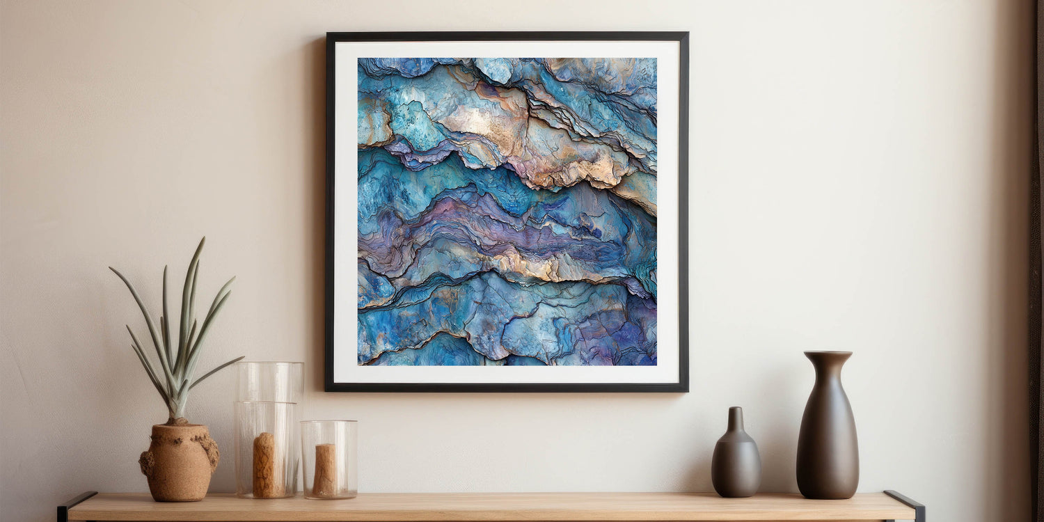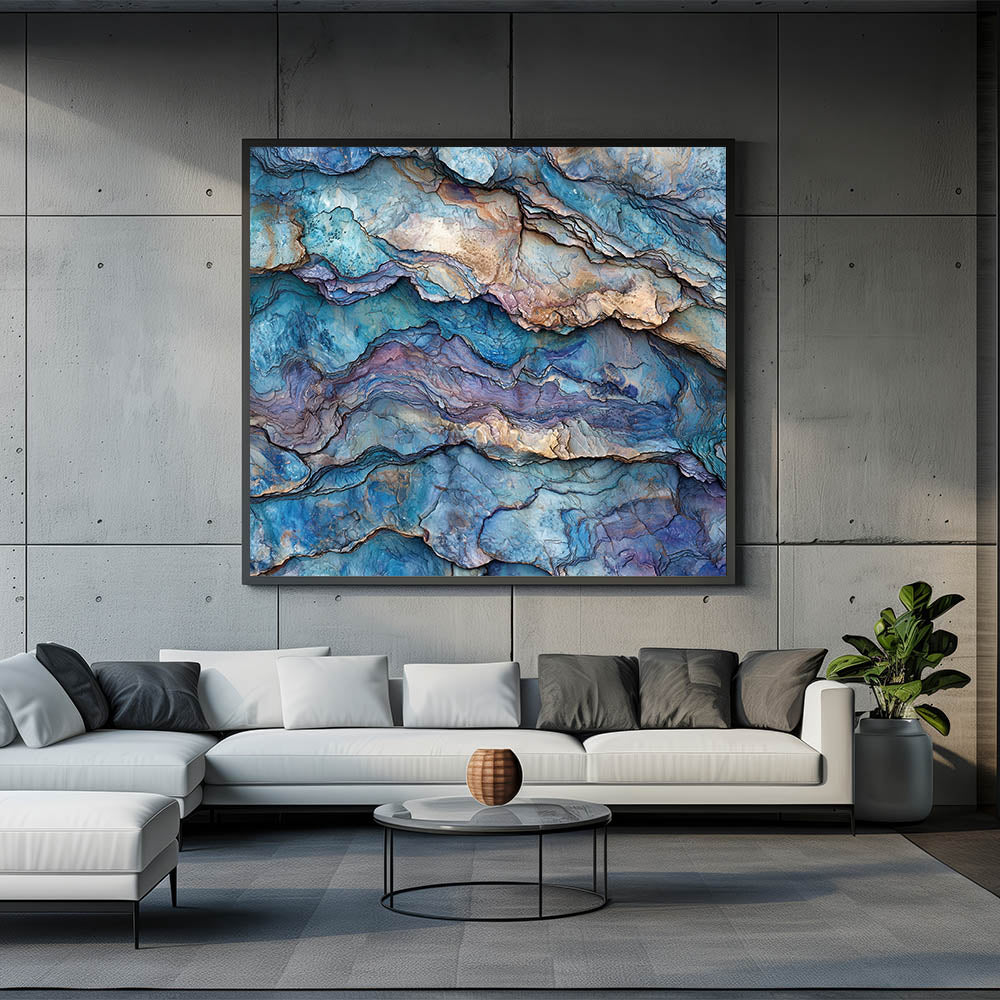 Immerse yourself in the mesmerizing beauty of this abstract canyon layers wall art, featuring intricate textures and hues of blue, purple, and earthy tones. This stunning design captures the essence of layered canyon landscapes, blending natural beauty with a contemporary artistic twist. Ideal for those who appreciate modern art and nature-inspired decor, this piece adds a unique and sophisticated touch to any space.