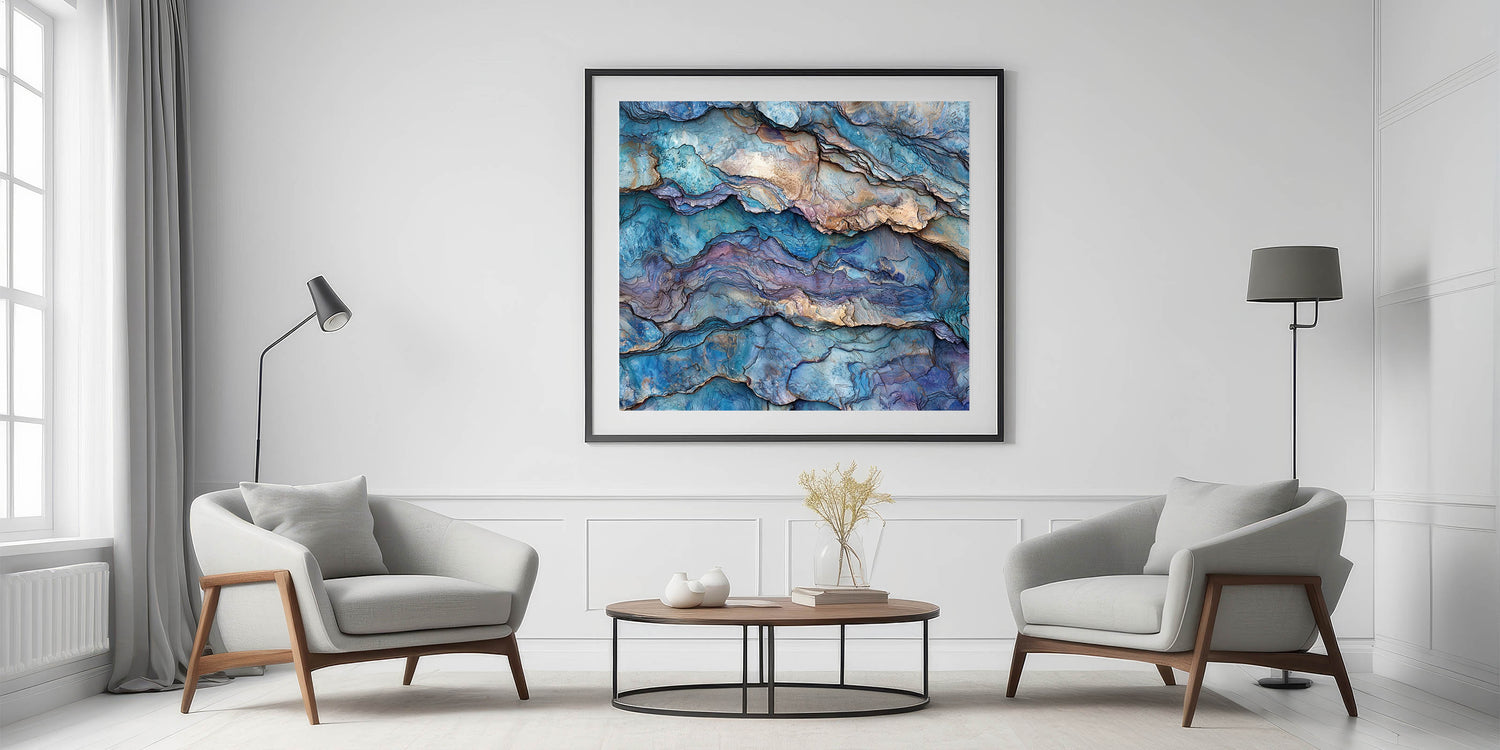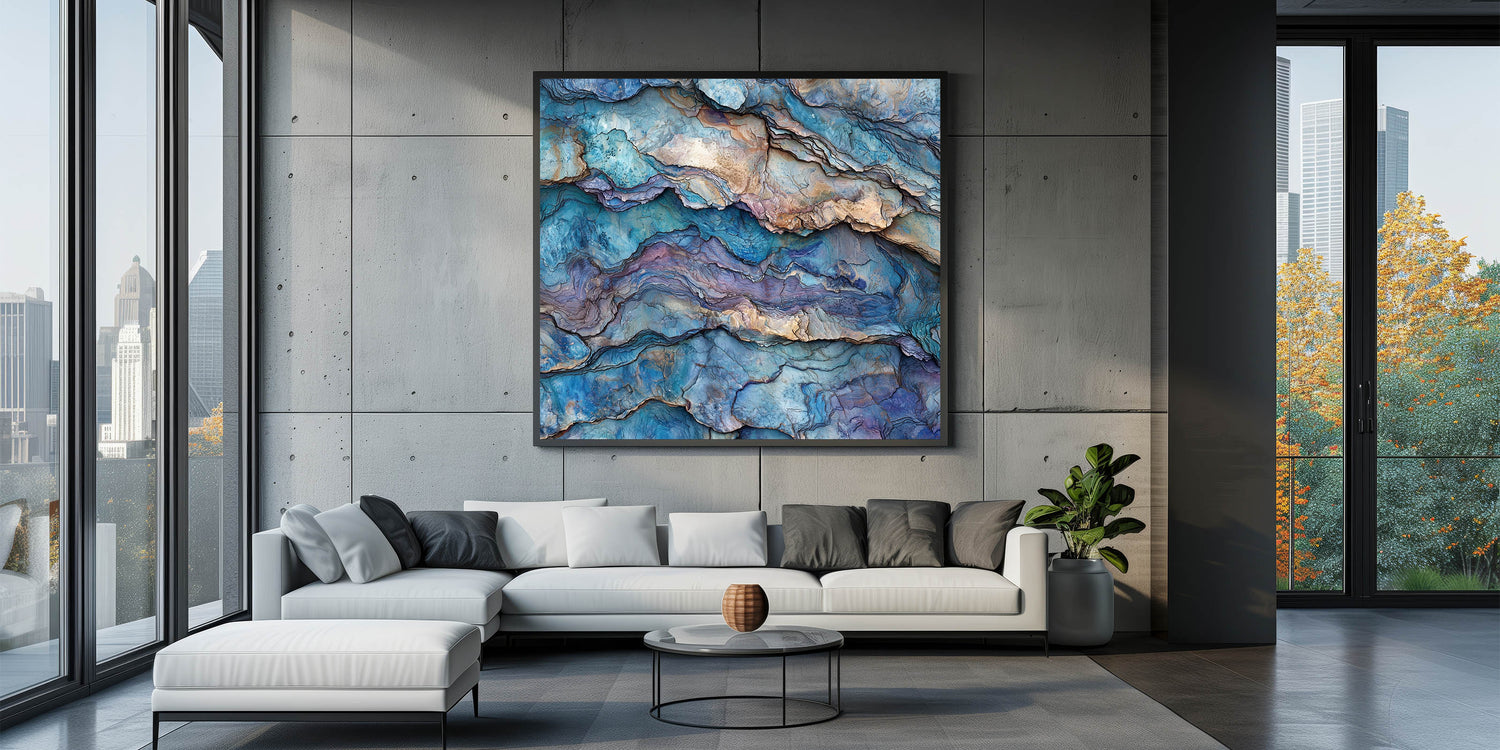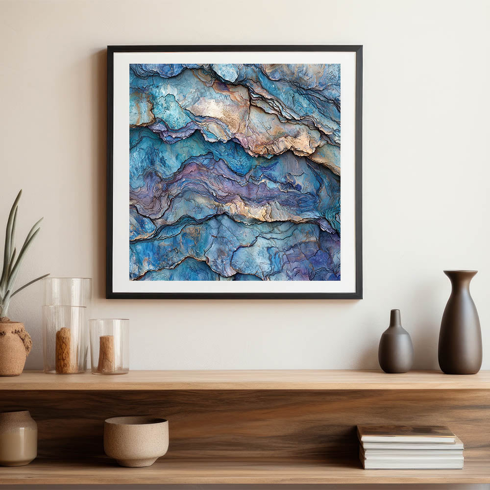 Immerse yourself in the mesmerizing beauty of this abstract canyon layers wall art, featuring intricate textures and hues of blue, purple, and earthy tones. This stunning design captures the essence of layered canyon landscapes, blending natural beauty with a contemporary artistic twist. Ideal for those who appreciate modern art and nature-inspired decor, this piece adds a unique and sophisticated touch to any space.
