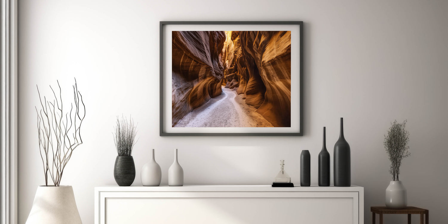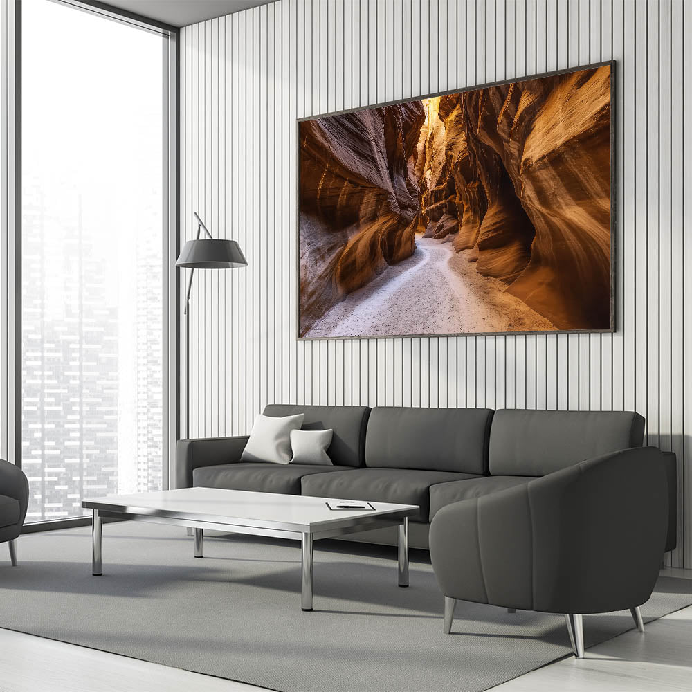 Transform your space with the natural beauty of this golden canyon artwork. The warm interplay of golden and earthy tones adds depth and tranquility, creating a welcoming atmosphere in any room. Whether displayed solo or as part of a gallery wall, this canyon artwork is sure to inspire and elevate your decor.