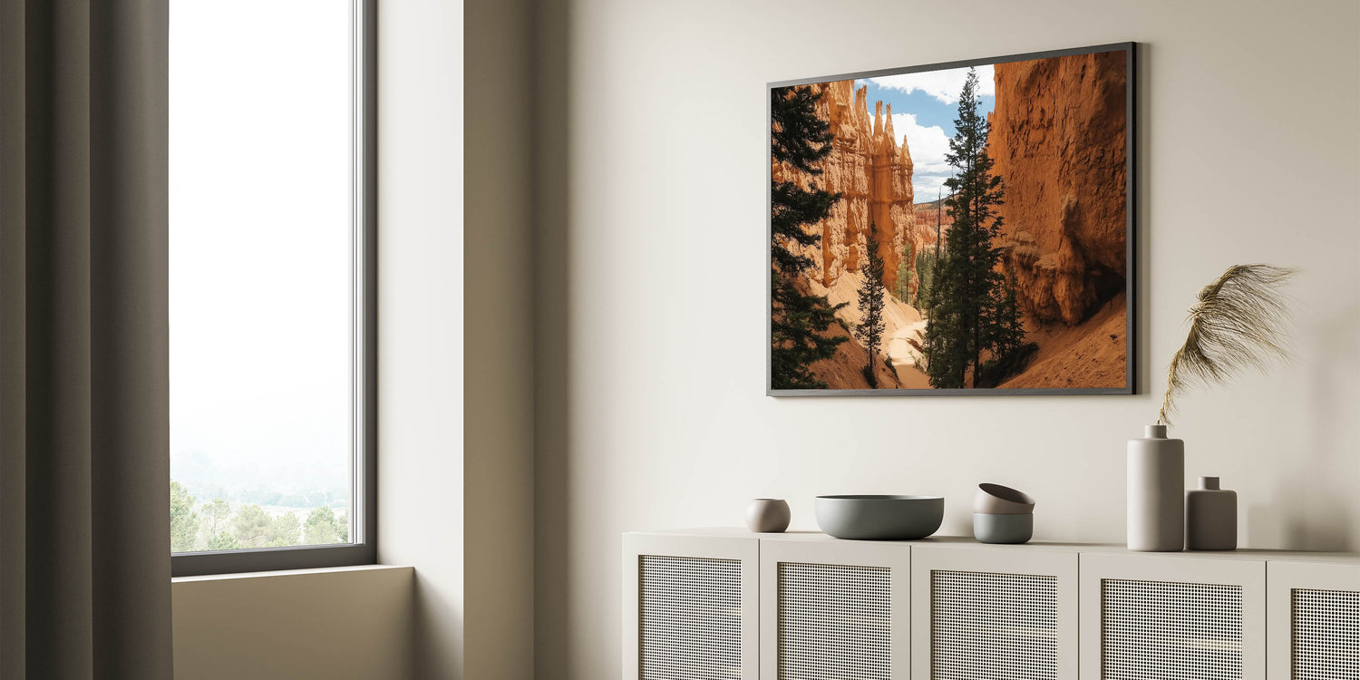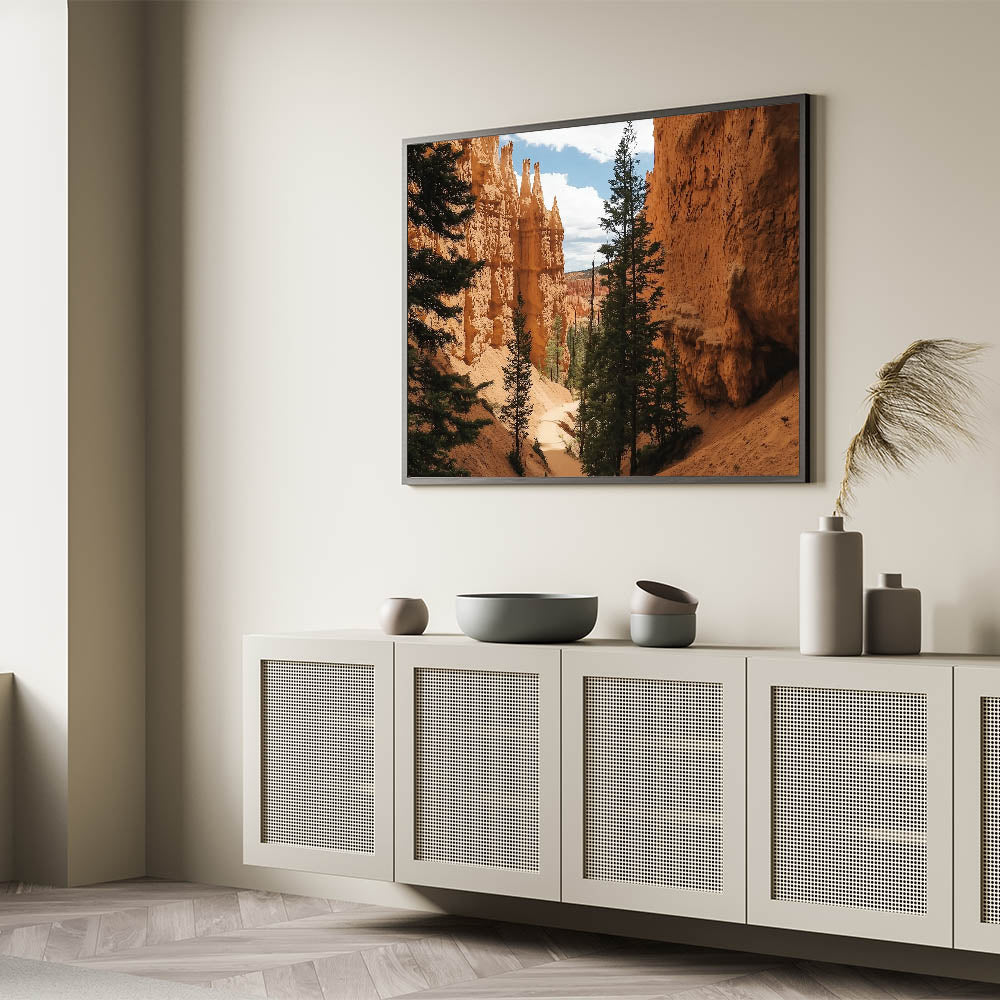Transform your living space with this breathtaking canyon print. Whether placed in a living room, study, or hallway, it adds warmth and character, creating an inviting atmosphere that celebrates the beauty of the great outdoors.