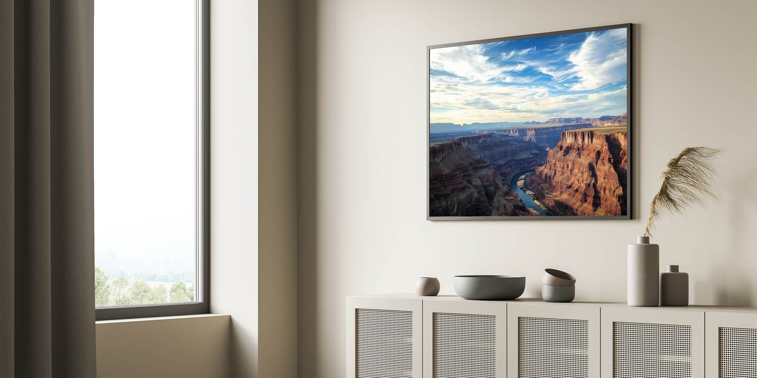 Transform your decor with the timeless elegance of this canyon artwork. Perfect for nature lovers and art enthusiasts, it brings the serenity and majesty of the Grand Canyon into your home. Explore our collection today to add this masterpiece to your space.