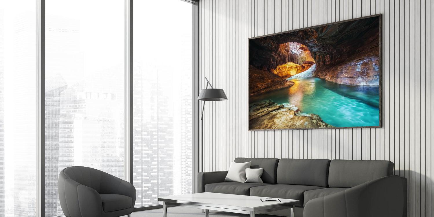 Transform your living space with this stunning canyon artwork. The harmonious interplay of turquoise water, golden highlights, and earthy canyon textures brings warmth and sophistication to any room. Whether displayed as a centerpiece or part of a curated gallery wall, this piece adds depth and elegance to your home decor.