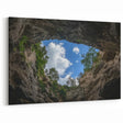 Experience the serenity of nature with this Open Sky Canyon Art Decor. Featuring a breathtaking view of the sky framed by rugged canyon walls and lush greenery, this artwork beautifully captures the harmony of Earth and sky. The vivid blue sky dotted with soft clouds brings a sense of openness and tranquility, making it a perfect addition to any living space, office, or bedroom.