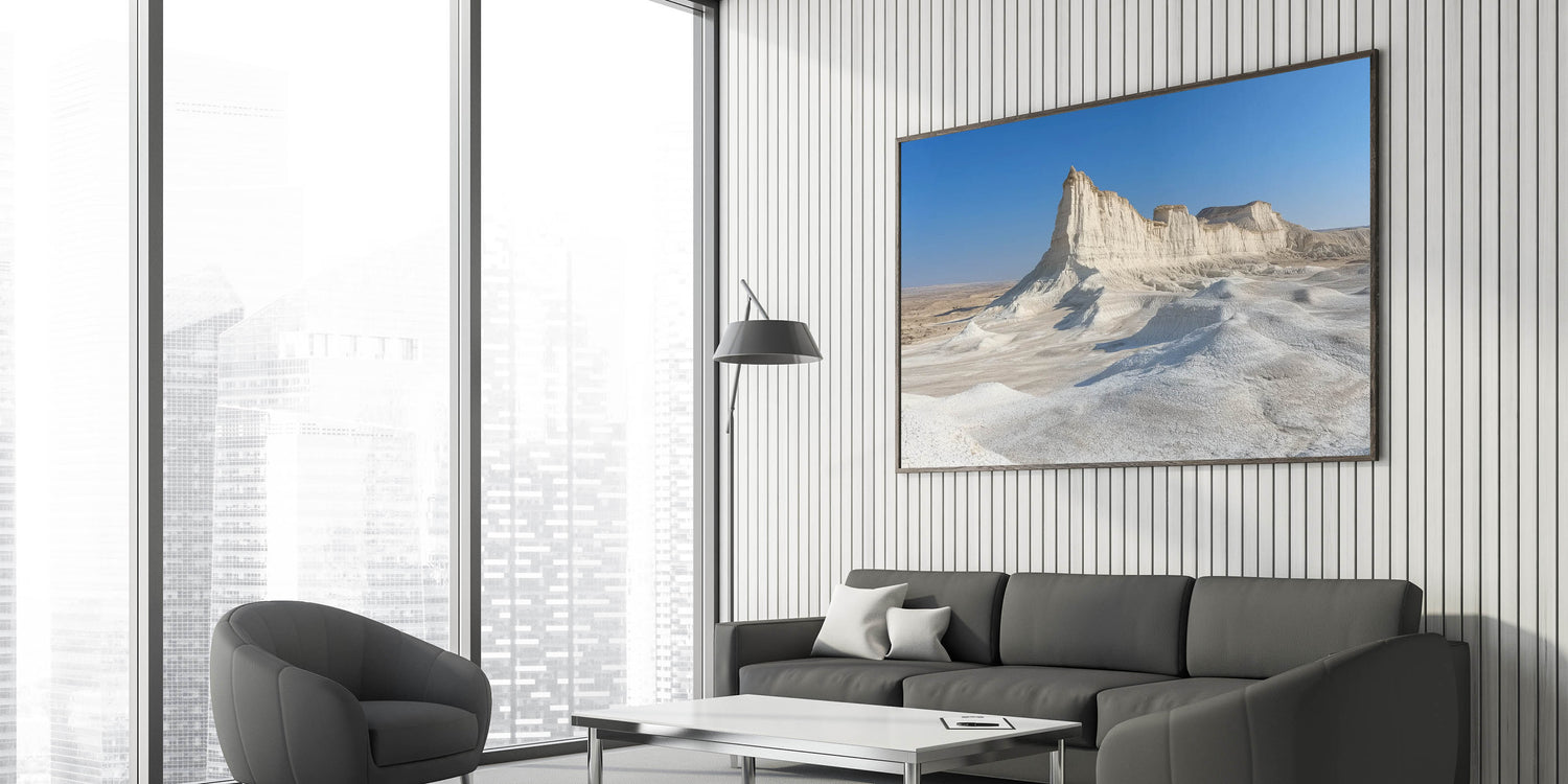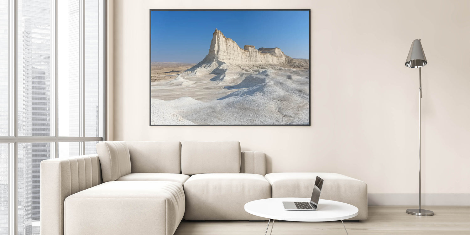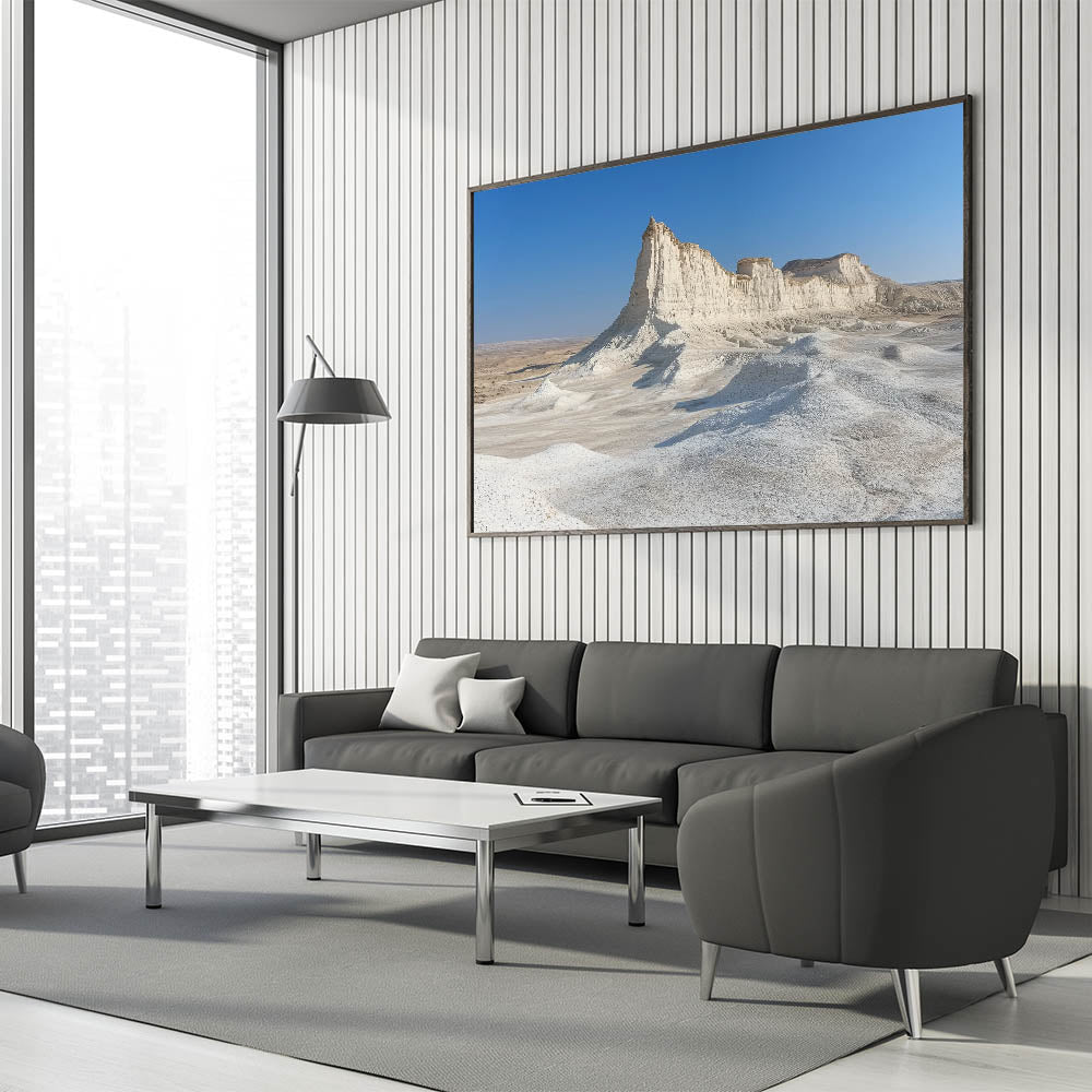 Bring the calm and sophistication of this white canyon into your living space. Whether displayed in a living room, office, or bedroom, this high-quality artwork adds a minimalist and elegant touch to any setting.