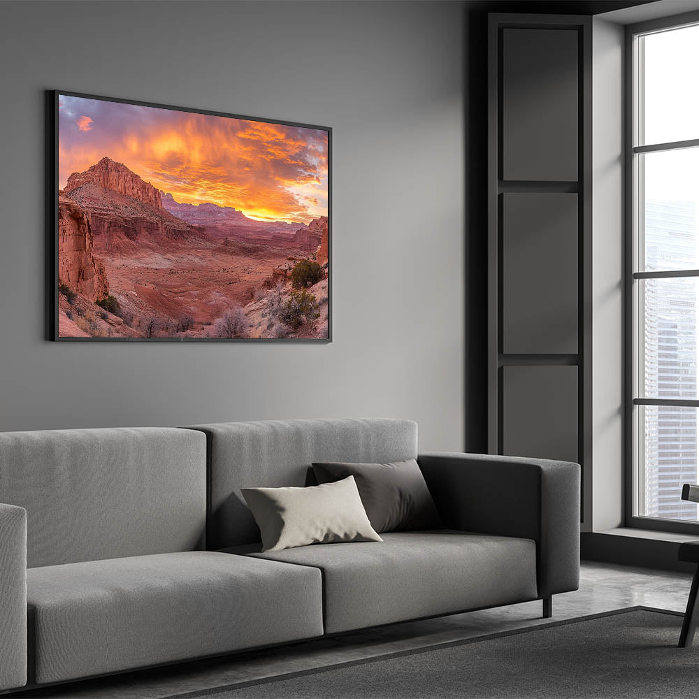 This Capitol Reef National Park wall art is the perfect way to add warmth and natural beauty to any space, making it a must-have for nature lovers and art collectors alike.