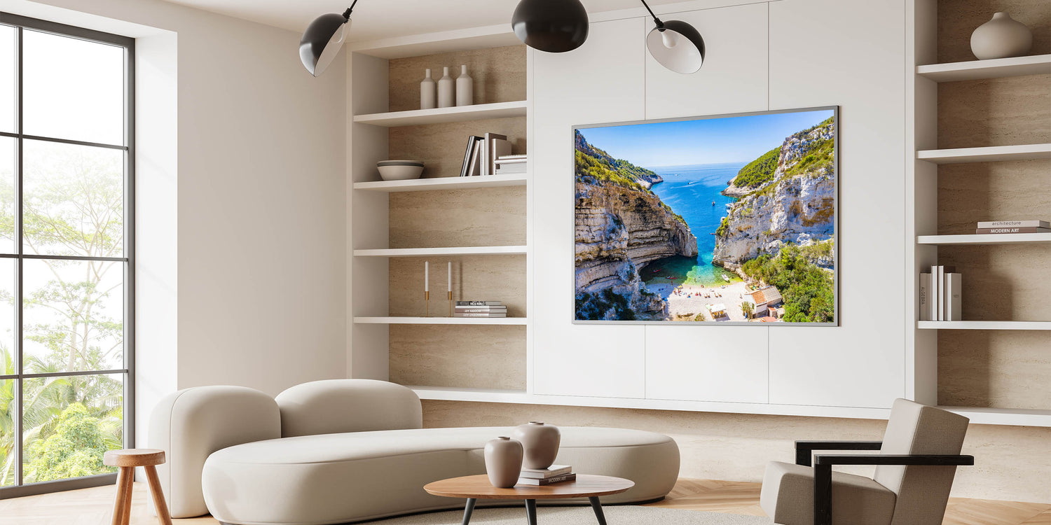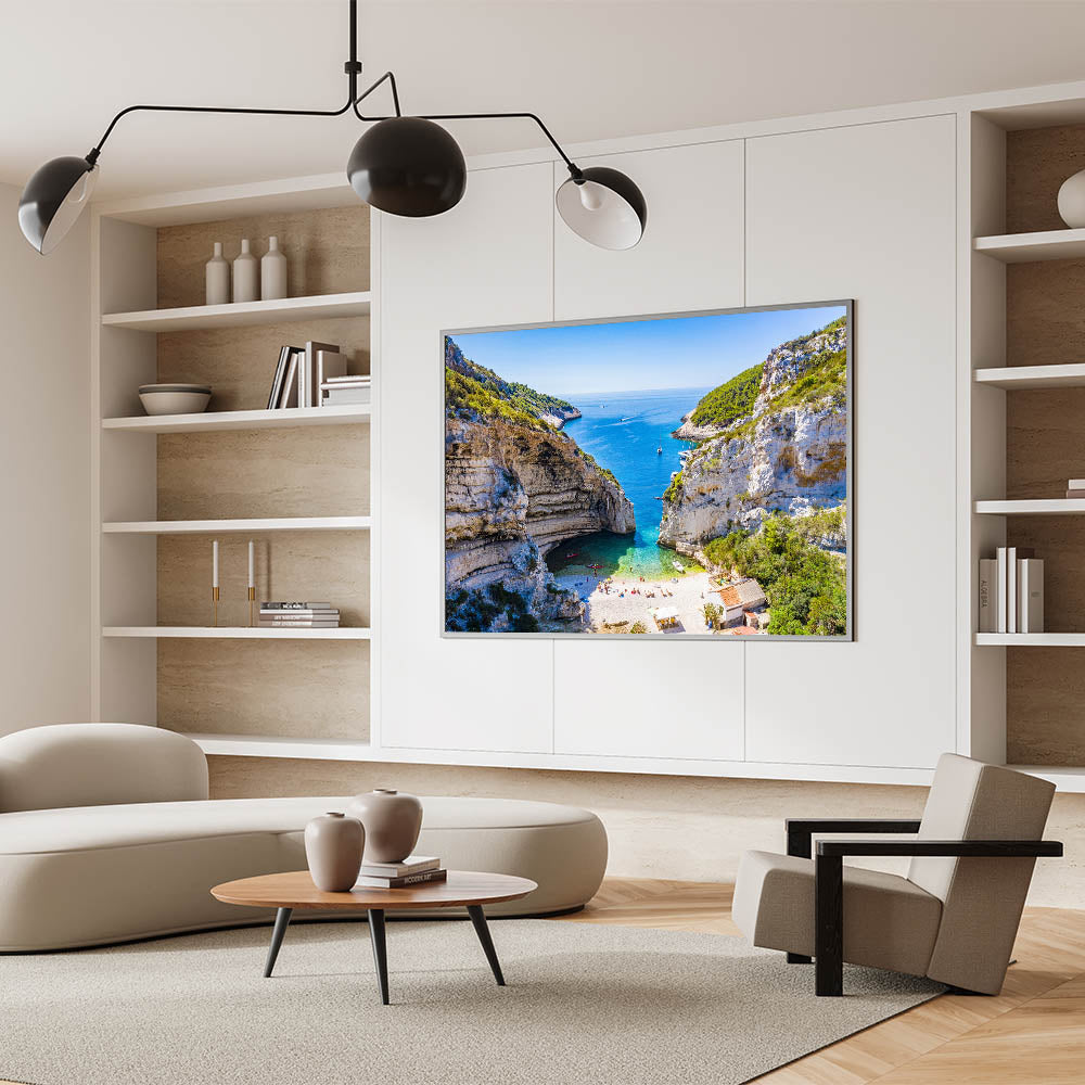 Bring the serene beauty of the Capri coastline into your home with this stunning piece of Capri coastal art. This artwork captures the natural wonder of a hidden beach cove, nestled between towering cliffs and the azure waters of the Mediterranean Sea. Perfect for anyone who loves Italian landscape art and wants to add a touch of Mediterranean decor to their living space.