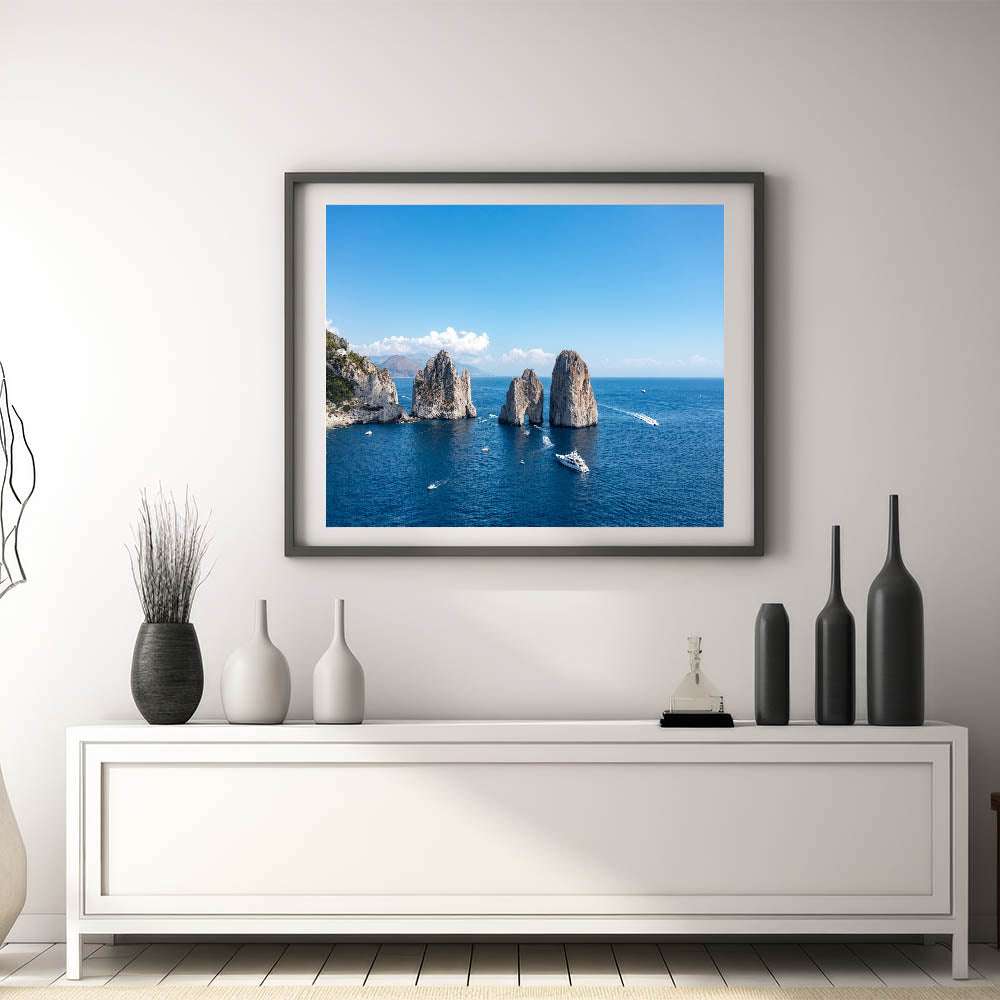 Whether you're decorating your home with Capri wall art or searching for a unique piece of Italy wall decor, this artwork will bring the allure of the Mediterranean into your space. The Faraglioni are one of the most recognized symbols of Capri, making this art piece a perfect way to celebrate the island’s natural beauty.