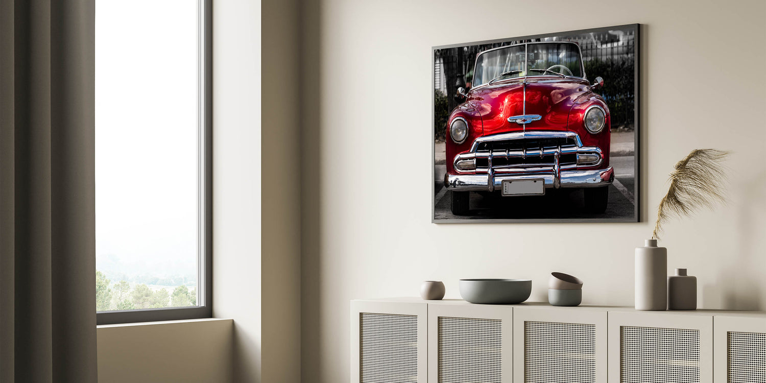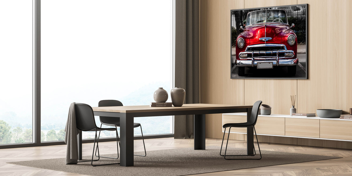 Antique Red Chevy Car Art: Classic Convertible Prints for Retro Decor
