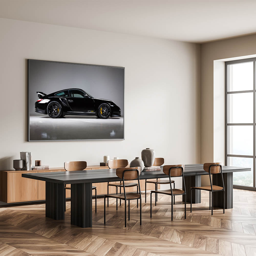 Transform your space with this stunning black GT2RS supercar wall art, perfect for automotive enthusiasts and luxury car lovers alike. This high-speed sports car art collection piece captures the essence of speed, power, and elegance, making it an ideal addition to any home, office, or garage decor.
