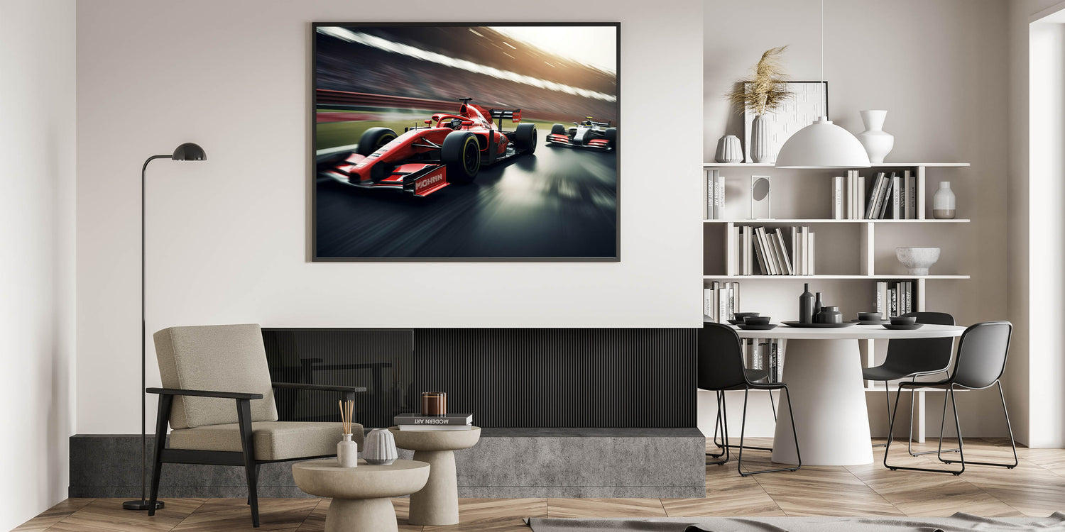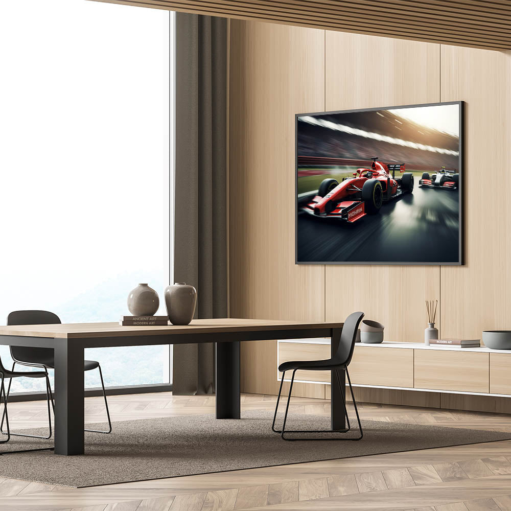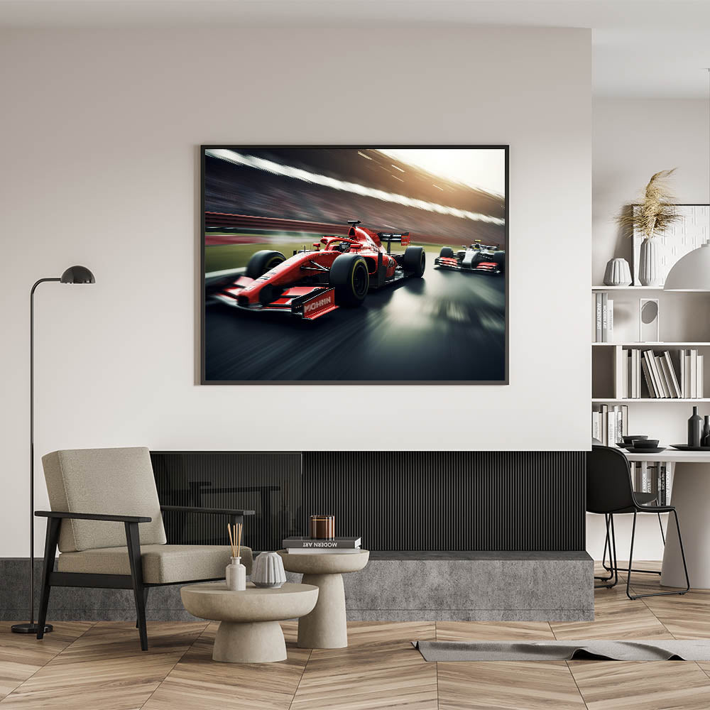 Rev up your decor with this visually striking Formula 1 art that captures the essence of high-speed racing. Its dynamic composition and high-quality finish make it a standout piece for any motorsport lover.