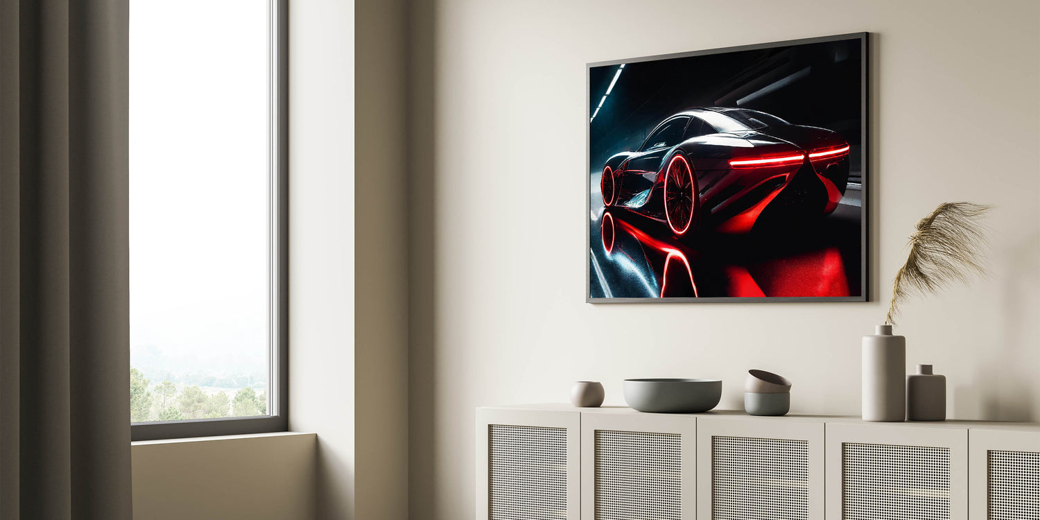 Elevate your space with this sleek supercar print that combines cutting-edge design with bold color. It’s the perfect way to make a powerful statement in any room.