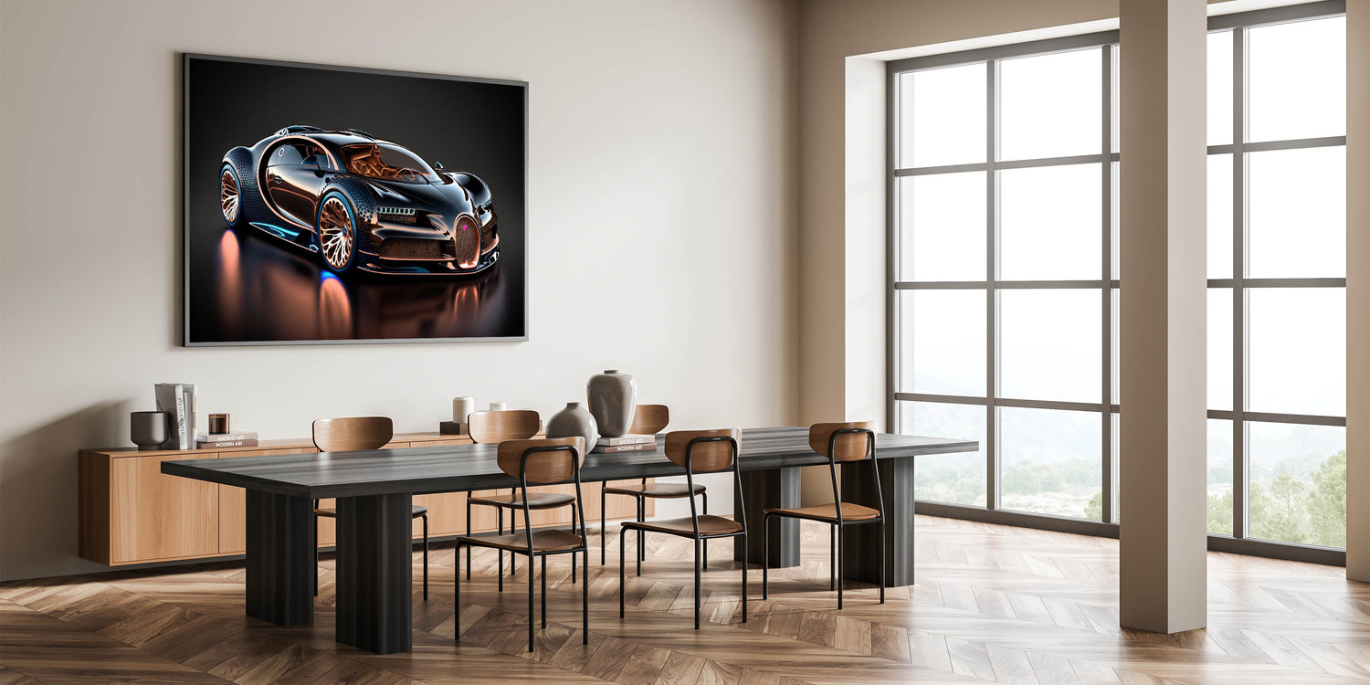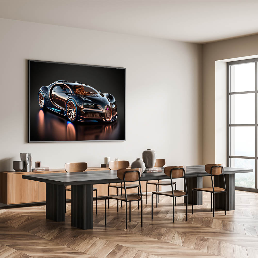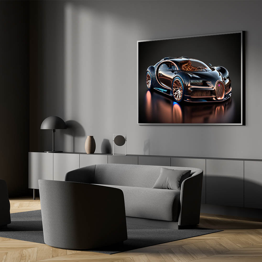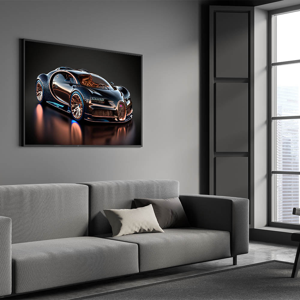 Transform your space with this luxurious exotic car wall art, showcasing a high-speed supercar in a stunning, futuristic design. Perfect for car enthusiasts and collectors alike, this piece captures the essence of speed and elegance, making it a must-have for modern decor. The rich details and vibrant colors in this high-speed sports car art collection make it an eye-catching centerpiece in any room.