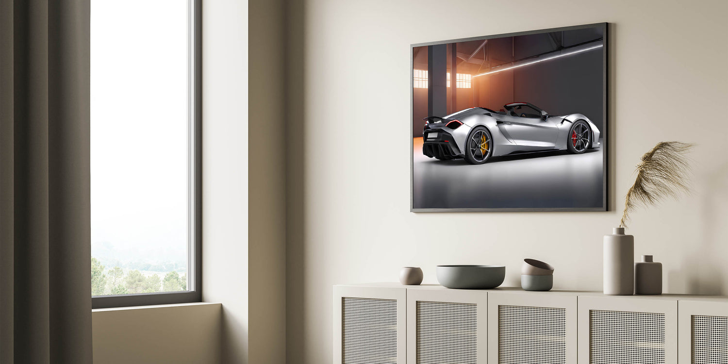 Bring the thrill of high-end automotive design into your living room, office, or garage with this luxurious sports car canvas. Its modern aesthetic and captivating details make it a must-have for anyone looking to elevate their decor.