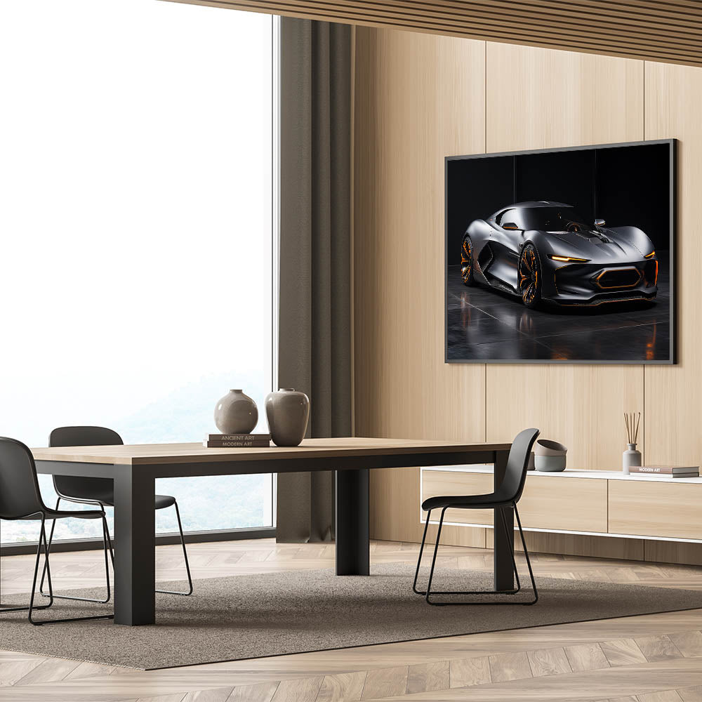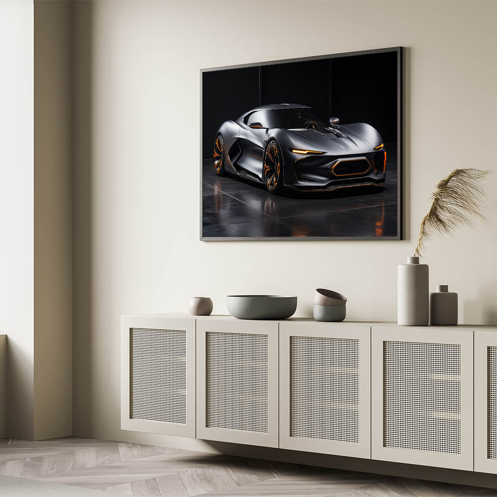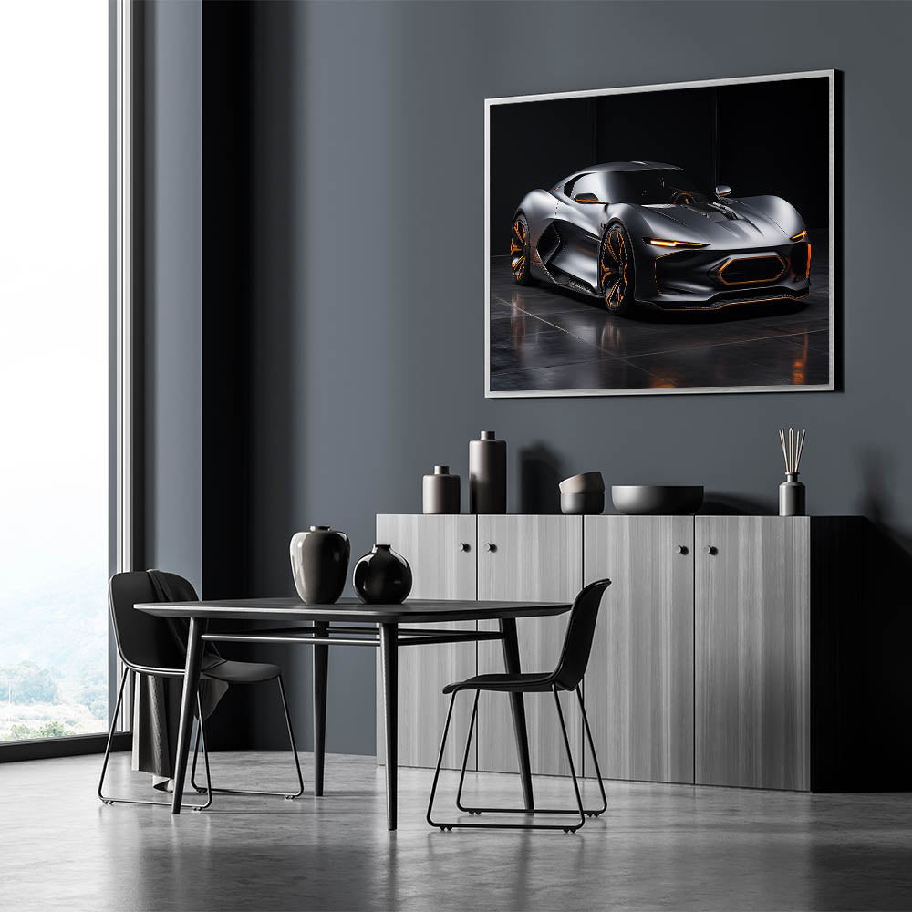 Transform your interior with this modern sports car print that exudes power and style. It's the perfect way to make a bold statement in any living room, office, or garage.