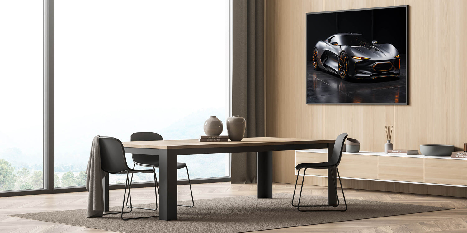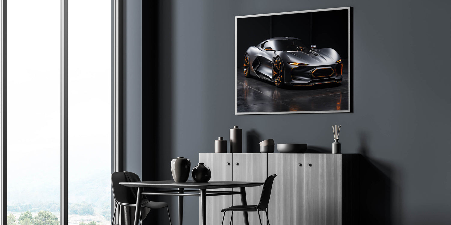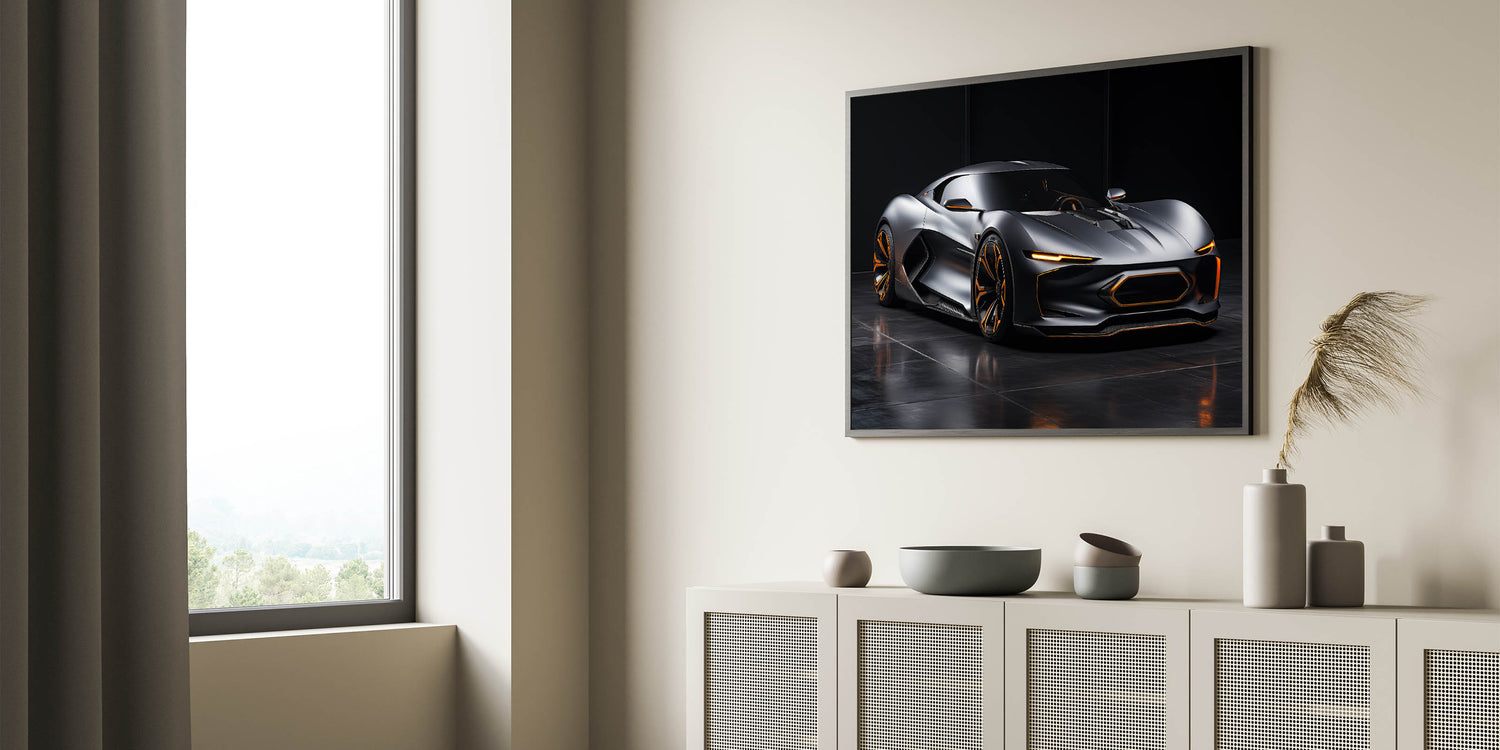 Transform your interior with this modern sports car print that exudes power and style. It's the perfect way to make a bold statement in any living room, office, or garage.