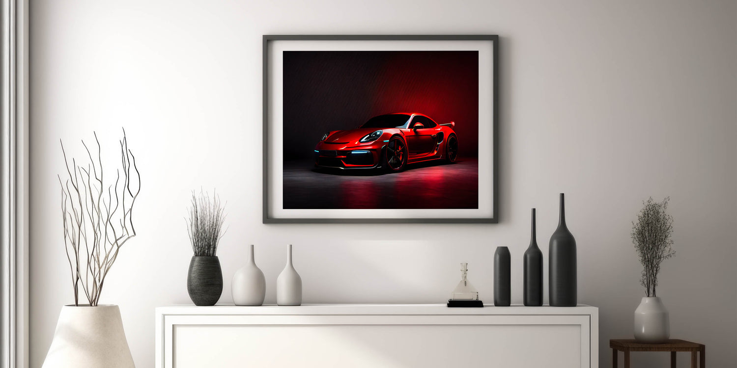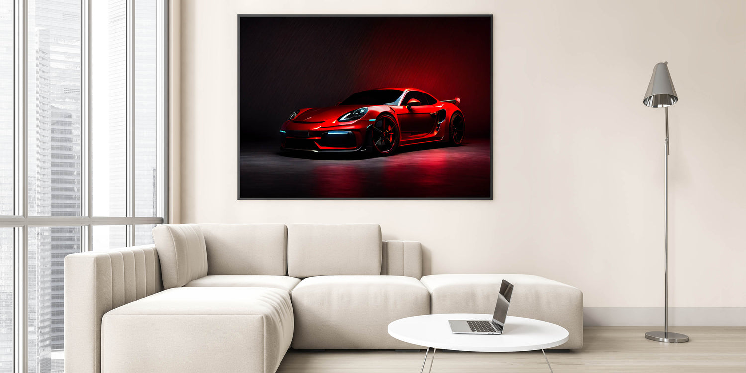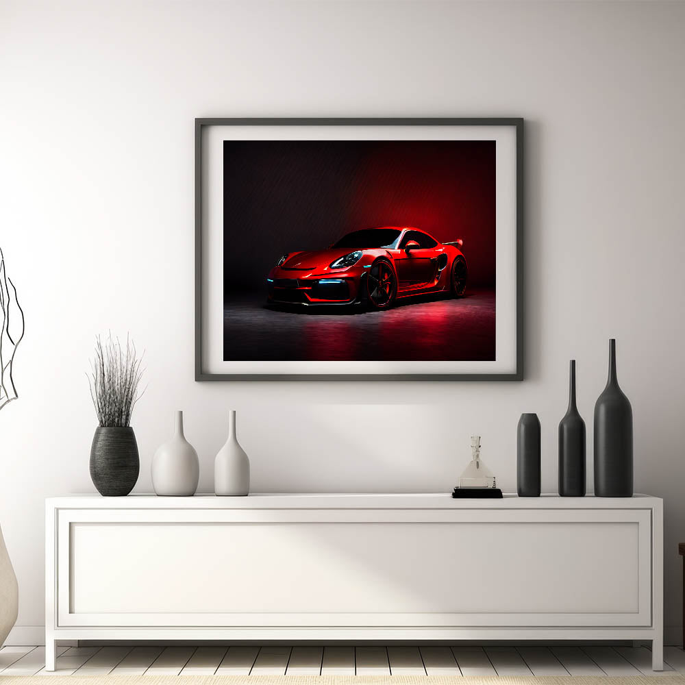Whether you're a fan of luxury cars or looking to enhance your interior with a bold statement piece, this Porsche supercar print is the perfect choice. Its modern design and powerful presence make it an eye-catching addition to any room.