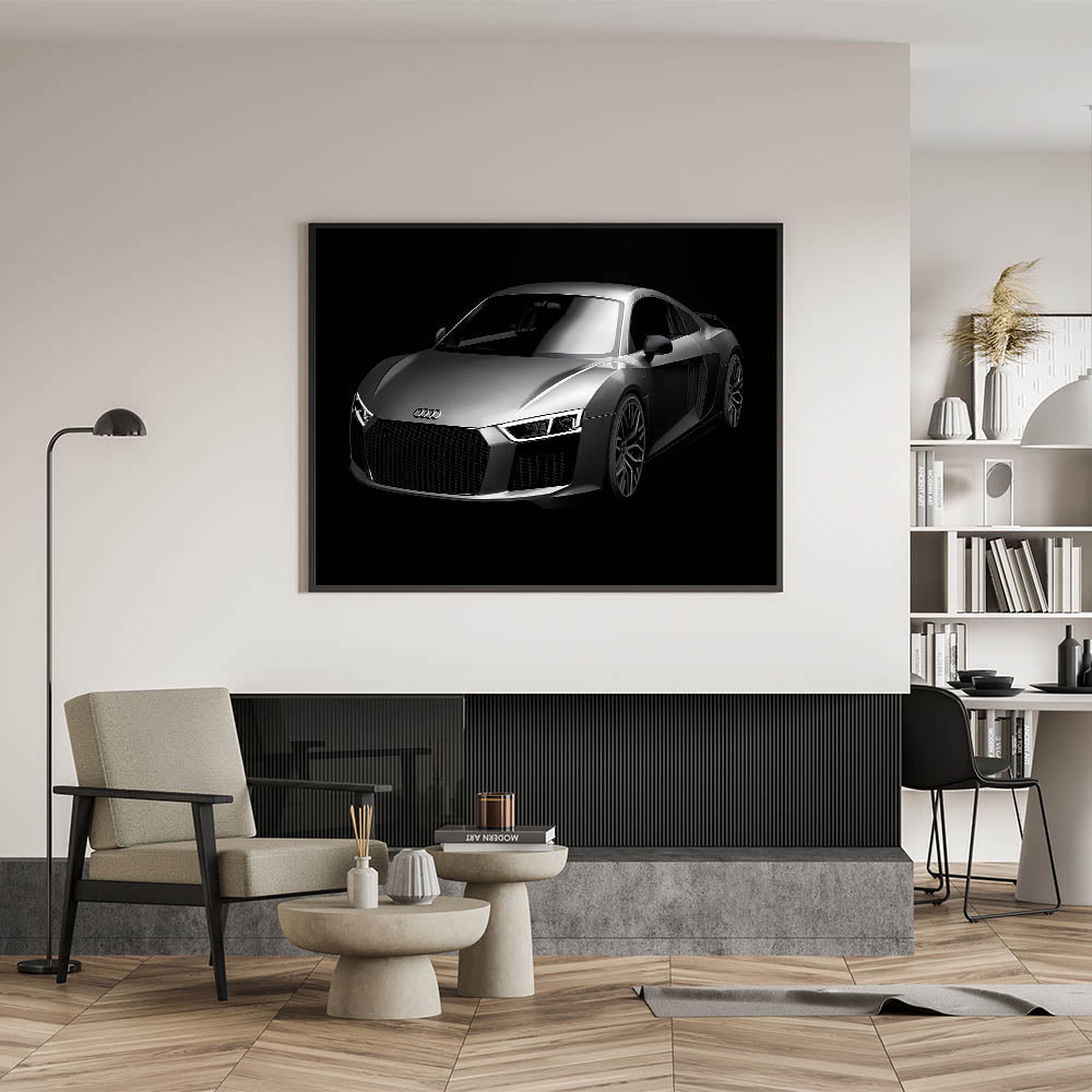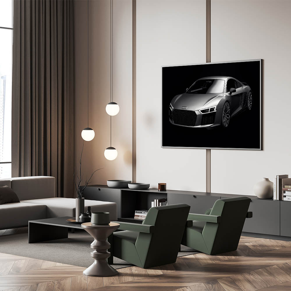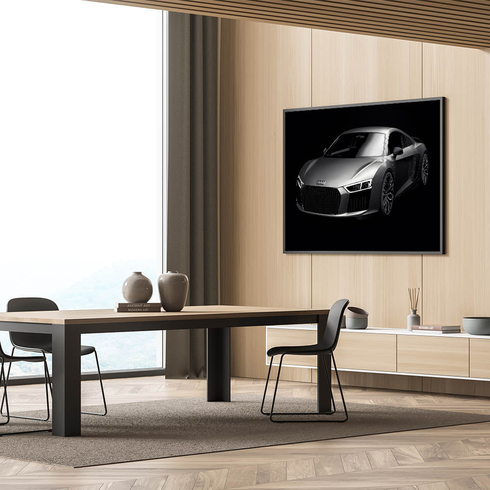 Enhance your space with this stunning wall art featuring the iconic Audi R8 in sleek silver. This high-speed sports car art collection captures the essence of modern luxury and automotive excellence. Perfect for car enthusiasts and collectors, this piece of art showcases the dynamic lines and powerful presence of one of the world’s most sought-after supercars.