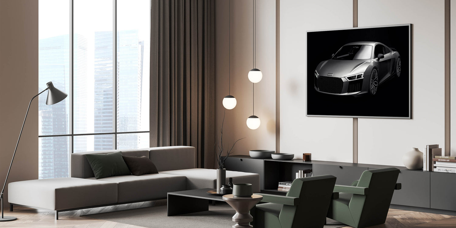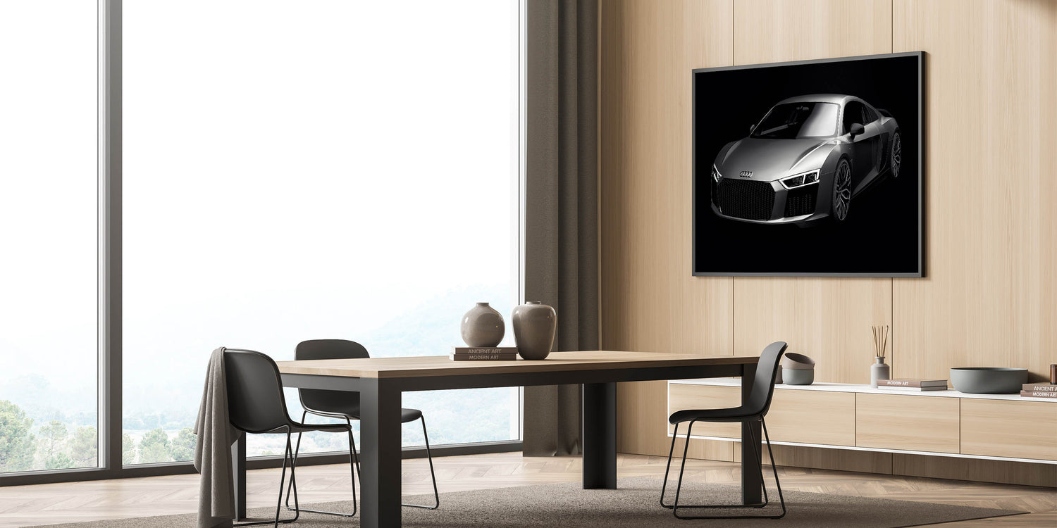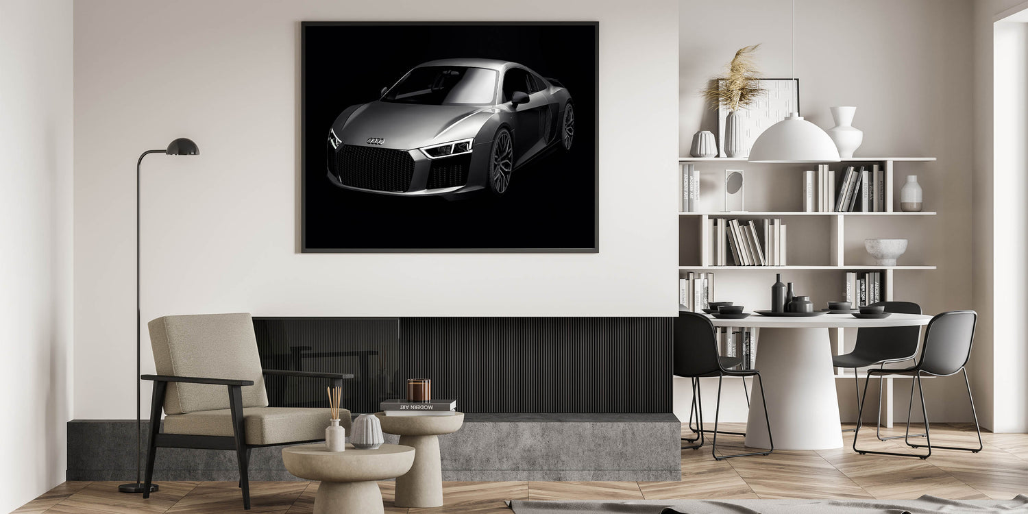 Enhance your space with this stunning wall art featuring the iconic Audi R8 in sleek silver. This high-speed sports car art collection captures the essence of modern luxury and automotive excellence. Perfect for car enthusiasts and collectors, this piece of art showcases the dynamic lines and powerful presence of one of the world’s most sought-after supercars.
