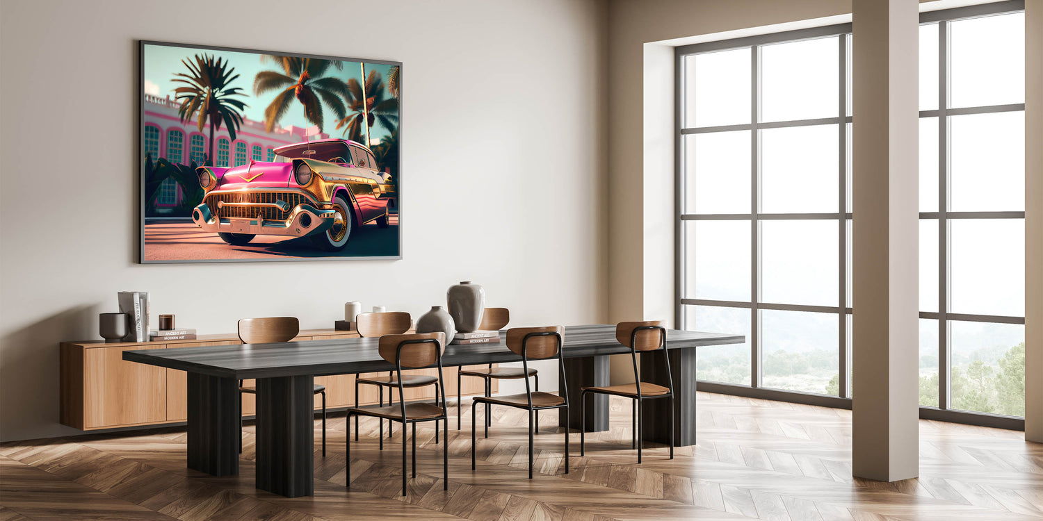 Add this timeless automotive artwork to your collection and let the vibrant colors and classic design of this pink Cadillac bring energy and style to your home or workspace.
