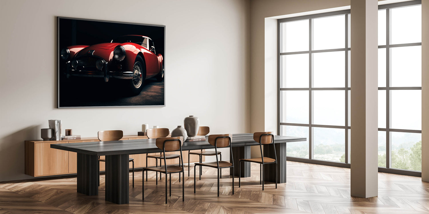 Add a touch of nostalgia and sophistication to your decor with this beautiful classic car print. It's a timeless piece that will bring a sense of history and style to any space.